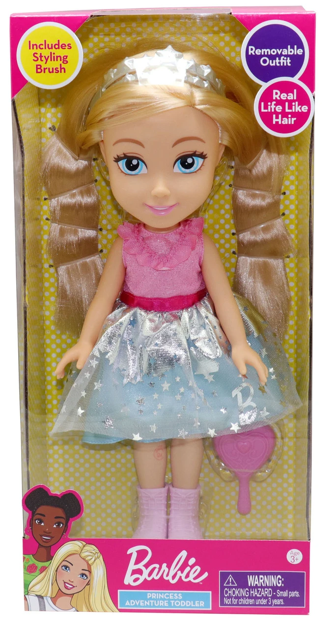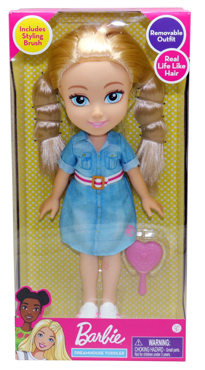 Bring home the world of Barbie with these NEW Toddler Dolls. Each Toddler is 33cm tall, and comes with a removable outfit and hairbrush! This assortment includes the Dreamhouse Barbie Toddler Doll – dressed in her iconic fashions from the Dreamhouse Adventures TV show, and the Princess Adventure Toddler Doll – dressed in her princess outfit. Each doll has beautiful hair to brush and style.