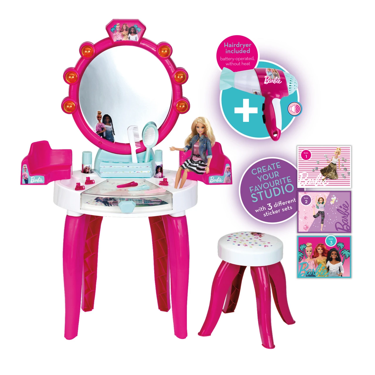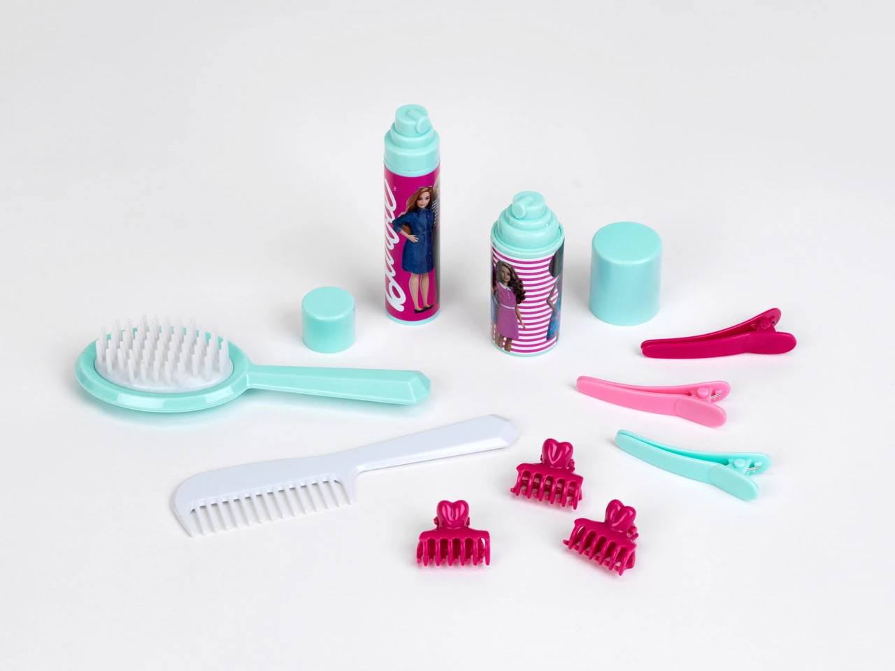 The Barbie-design beauty salon has storage areas that can also serve as catwalks for dolls. With a comb, a brush, hair grips and clips and hair spray, it’s not only dolls that will be beautifully styled. The pivoted storage areas have plenty of space for storing things. Children love putting on make-up and making themselves look smart and this also develops their motor skills, imagination, and creativity.
