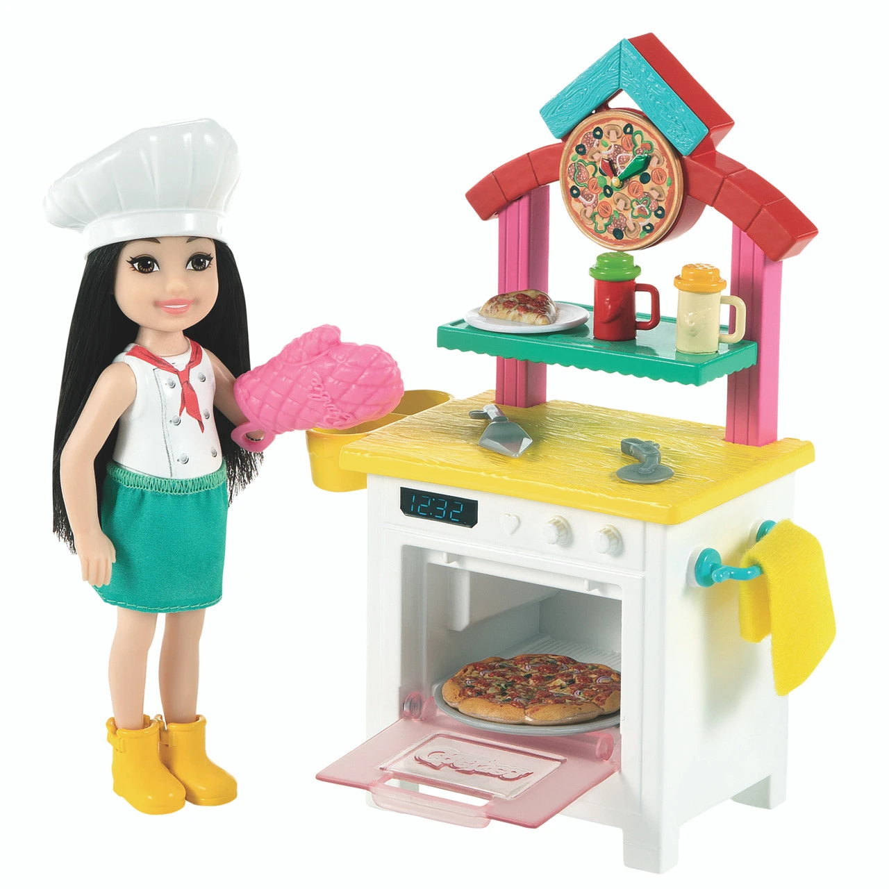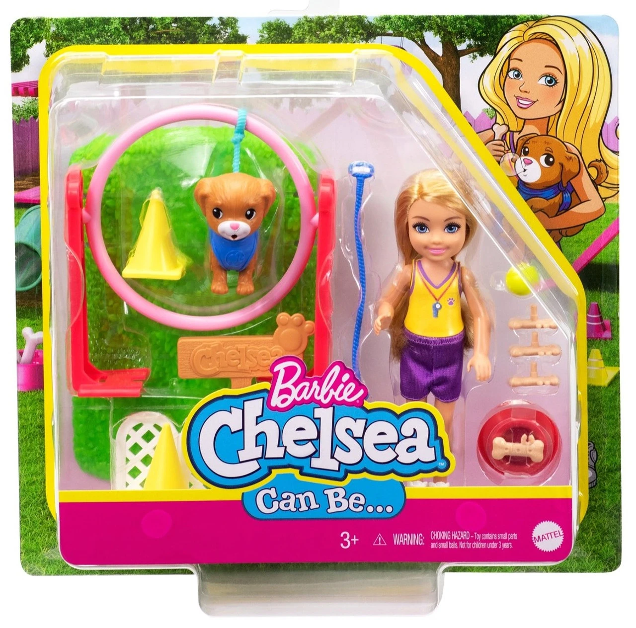Just like her big sister, Barbie®, Chelsea® doll loves trying on different career roles! Kids can explore a world of fun with the Barbie® Chelsea® Can Be career doll assortment featuring a choice of the Dog Trainer playset or the Pizza Chef playset featuring cute themes and storytelling pieces to play out the career fun! The Dog Trainer playset features adorable Chelsea® doll (6-in/15.24-cm) dressed in a cute tank and shorts and she’s ready to train her pup! Playset comes with Chelsea® doll, dog with leash, a hoop for jumping, cones for an obstacle course, dog dish, training treats and more! The Pizza Chef playset includes Chelsea® doll (6-in/15.24-cm) dressed in a chef outfit with hat, a pizza oven and counter to make pizzas, oven mitt, cooking accessories and more.