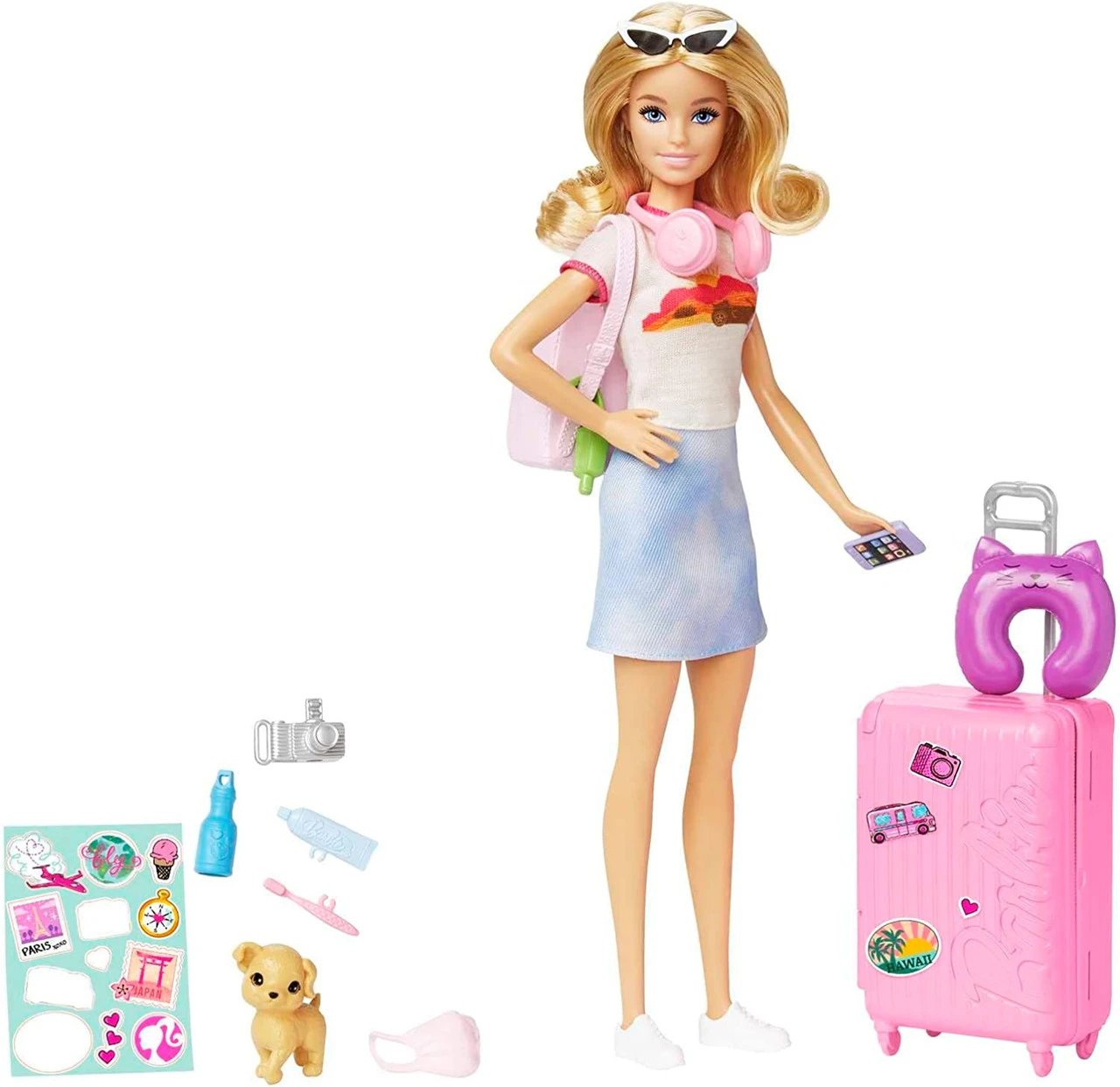 - Barbie® doll is ready for her next big adventure with her puppy and 10+ travel accessories to inspire storytelling!