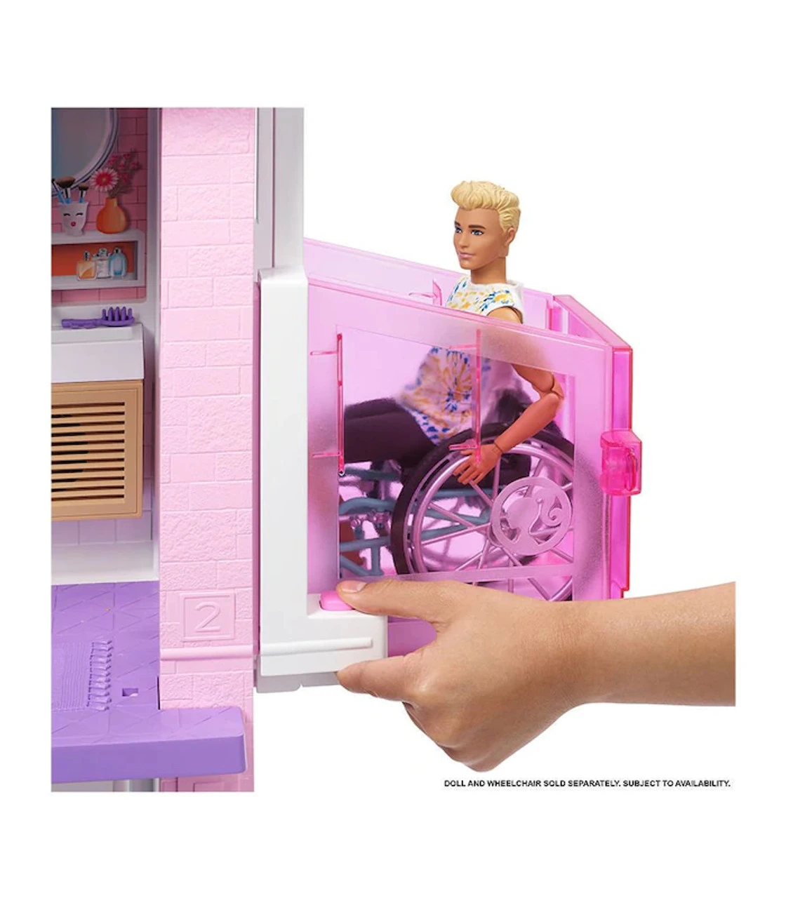 When young imaginations move into the Barbie Dreamhouse™, they turn this amazing dollhouse into a dream home! More than 3 feet tall and 4 feet wide, the Barbie® Dreamhouse™ has so many amazing features — three stories, eight rooms that include a carport (car not included) and a home office, a working elevator that fits four dolls or a Barbie doll in a wheelchair, a pool that has a slide descending from the story above, five pieces of transforming furniture, lights, sounds and more than 60 additional accessories, including an adorable puppy, that can all be used to decorate, set the scene and play out so many stories. Plug-and-play design helps keep pieces in place as small hands move around (and make clean up easy for adult hands!). Decorations and furniture for indoor and outdoor settings inspire play from all angles, and the transformations provide two-in-one fun while encouraging flexible action — the couch turns into bunk beds, the coffee table flips for a bed sized for Chelsea™ doll (sold separately), the fireplace becomes a home office, the refrigerator turns into an outdoor food stand and the oven houses a barbecue in back. Lights and sounds add even more delightful touches — the oven lights up and the timer ticks, the stovetop sizzles with the frying pan and whistles with the tea kettle and the toilet makes a flushing sound.