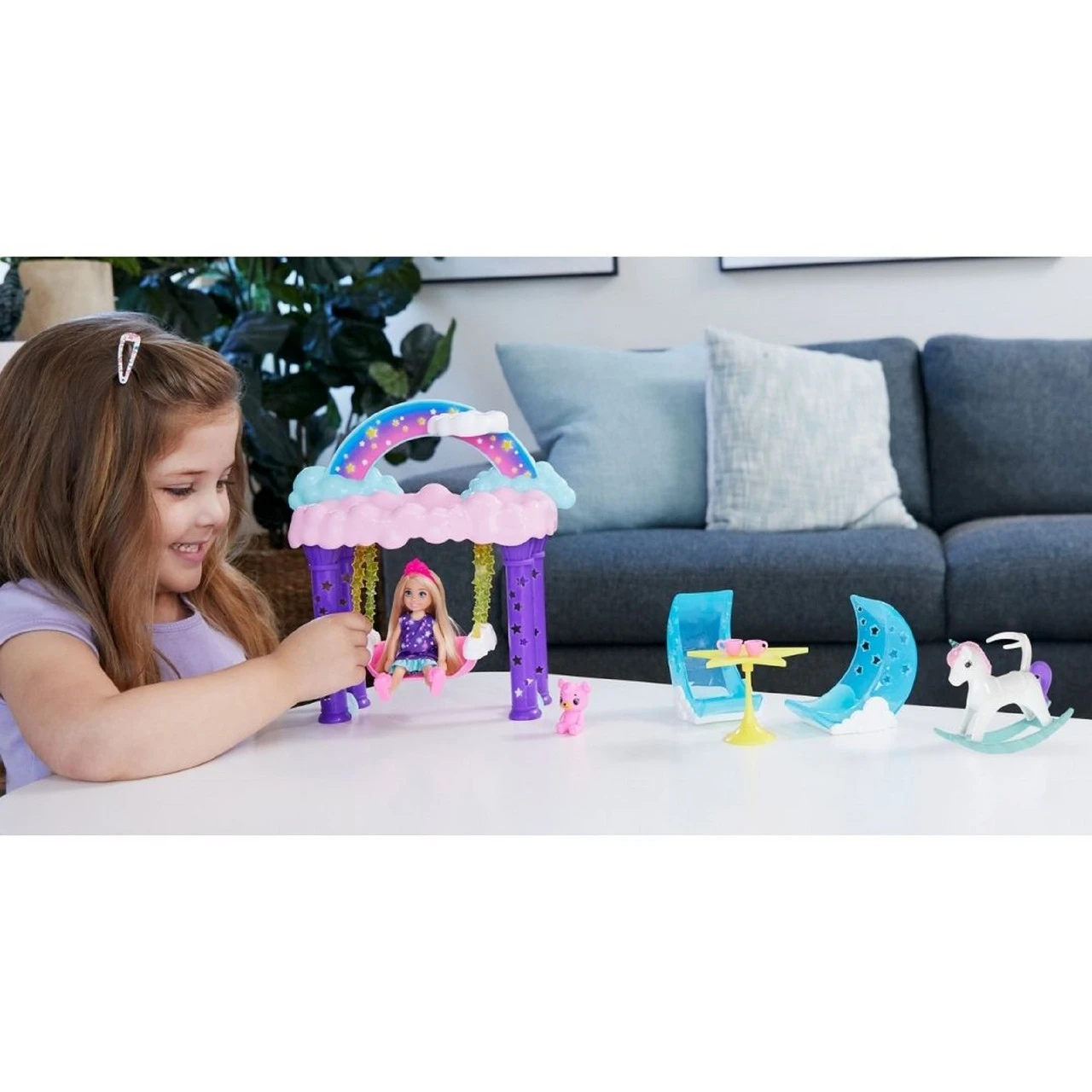 Inspire fairy-tale storytelling with Chelsea playsets from Barbie Dreamtopia! These sets spark all kinds of imaginative fun with large pieces and smaller accessories that set the scene for an enchanted day of play. Each includes Chelsea doll in a fairy or princess look, plus an adorable animal friend. Colourful designs and fantastical details inspire fairy-tale fun, and sweet accessories bring fantastical detail to kids’ stories. It’s easy to play out dreams real and imagined with these Chelsea playsets because when you enter Dreamtopia, you wake up to a world where dreams become reality! Each sold separately, subject to availability. Dolls cannot stand alone. Colours and decorations may vary. Barbie Dreamtopia Chelsea playsets feature large pieces and themed accessories that set the scene for an enchanted day of play. Spark sleepover stories with Chelsea princess doll and her teddy friend, a pair of moon rockers, a unicorn rocking horse and a loft bed with a swing. Inspire an all-day play with Chelsea doll and her puppy friend in fairy looks, a flower petal seesaw and a treehouse with a swing and slide. Each Chelsea playset includes a Chelsea doll in a fairy or princess look, plus an animal pal to spark sweet nurturing moments. Barbie Dreamtopia Chelsea playsets make great gifts for kids ages 3 years old and up! They can collect more Barbie Dreamtopia dolls and toys to expand the magical world. – Product Dimensions: Height: 29.9cm x Depth: 12.7cm x Width: 44.1cm – WARNING: CHOKING HAZARD. Small parts. Not suitable for children under 3 years.