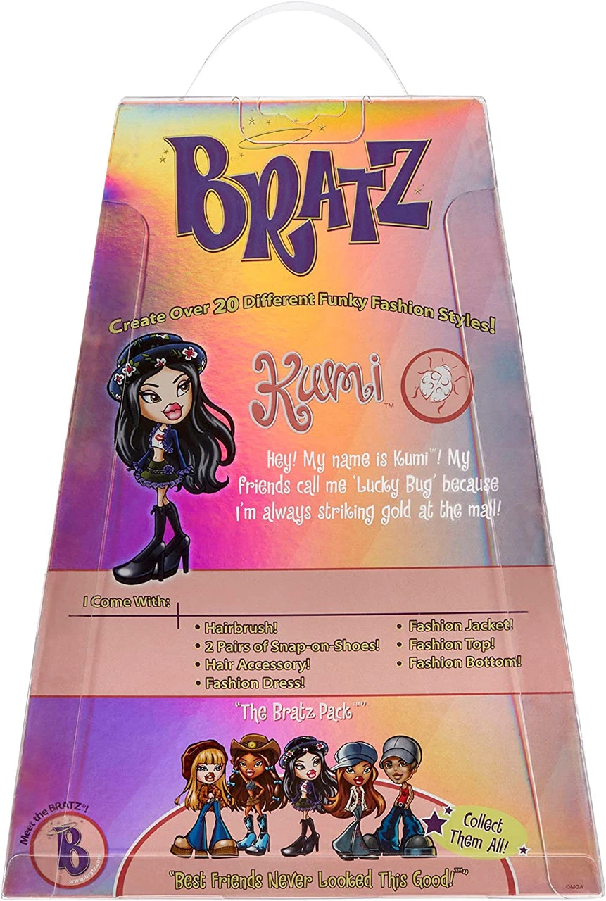 - INCLUDES: 1 Bratz Original Fashion Doll, fashions, 2 pairs of shoes, hat, hair brush, and holographic poster