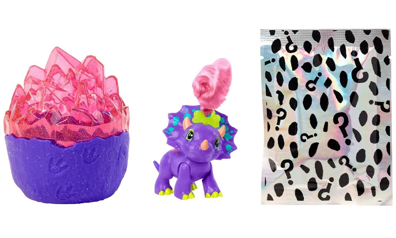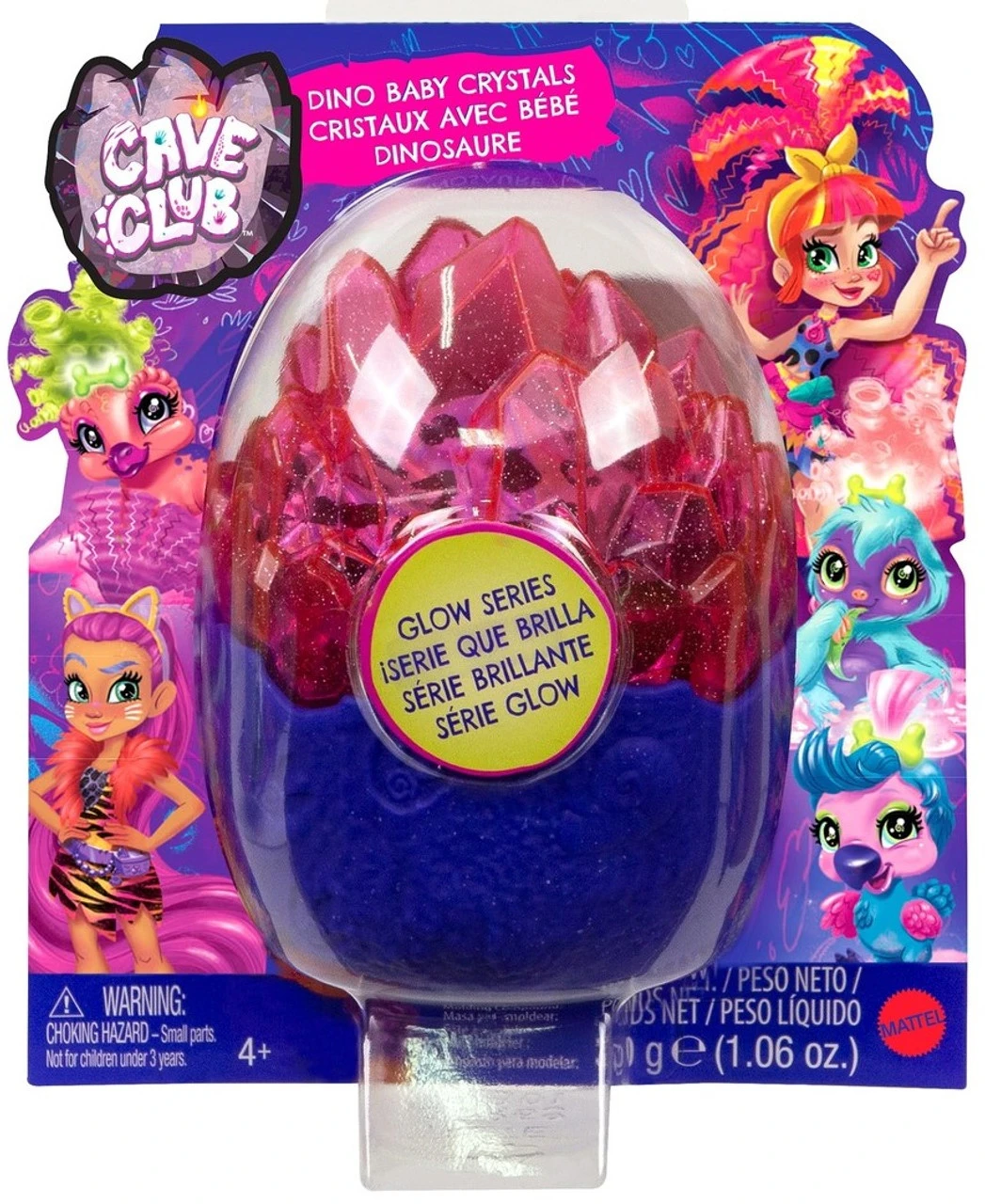 Unbox prehistoric surprises with Cave Club™ Dino Baby Crystals, the Glow Series! These surprise pets are a mystery until you unbox them — crack open the crystal and open the sparkly blind bags to see what’s inside. Each crystal holds a surprise baby animal figure, a glow-in-the-dark plug-and-play hair accessory for your prehistoric pet and a packet of squishy, sparkly slime or mouldable sand for your dino baby to stomp around in. Collectible characters include dinosaurs, a mammoth, sloth, saber-tooth tiger and more — and the Glow Series features two new dino baby pets for kids to discover!