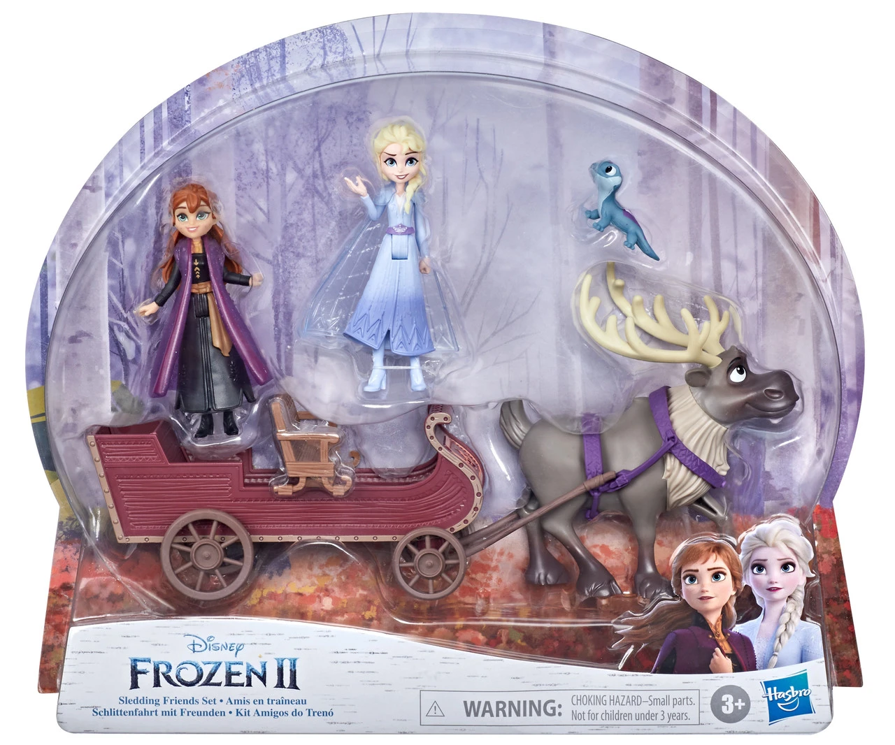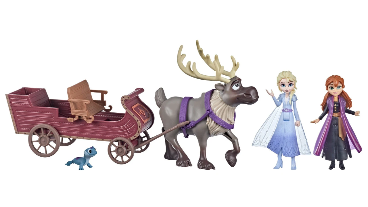 Kids can recreate scenes from Disney’s Frozen 2 with the Sledding Friends Set. Including 4 dolls –Anna, Elsa, the salamander Fire Spirit, Bruni, and Sven — this set makes an awesome Frozen doll collection. The Anna and Elsa dolls are in their movie-inspired travel looks with molded-on boots. Sven comes with a harness that attaches to a sleigh for all the characters to ride in together.
