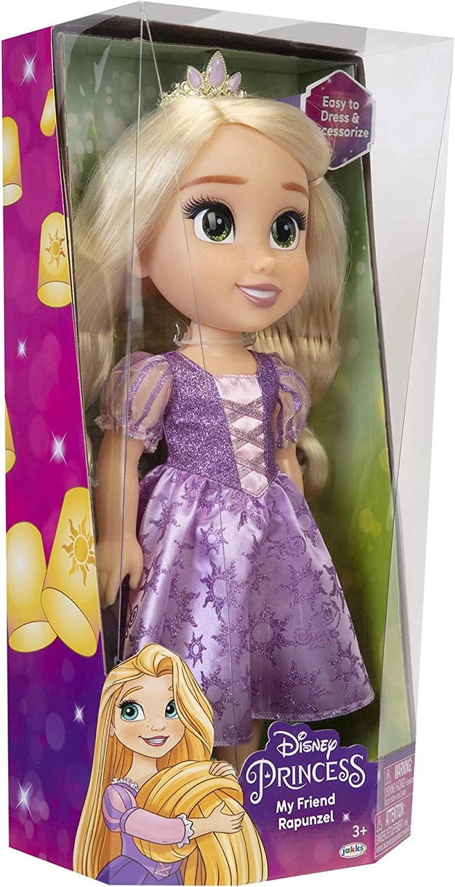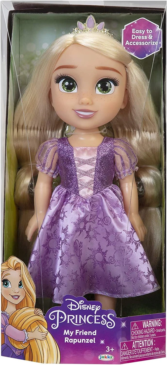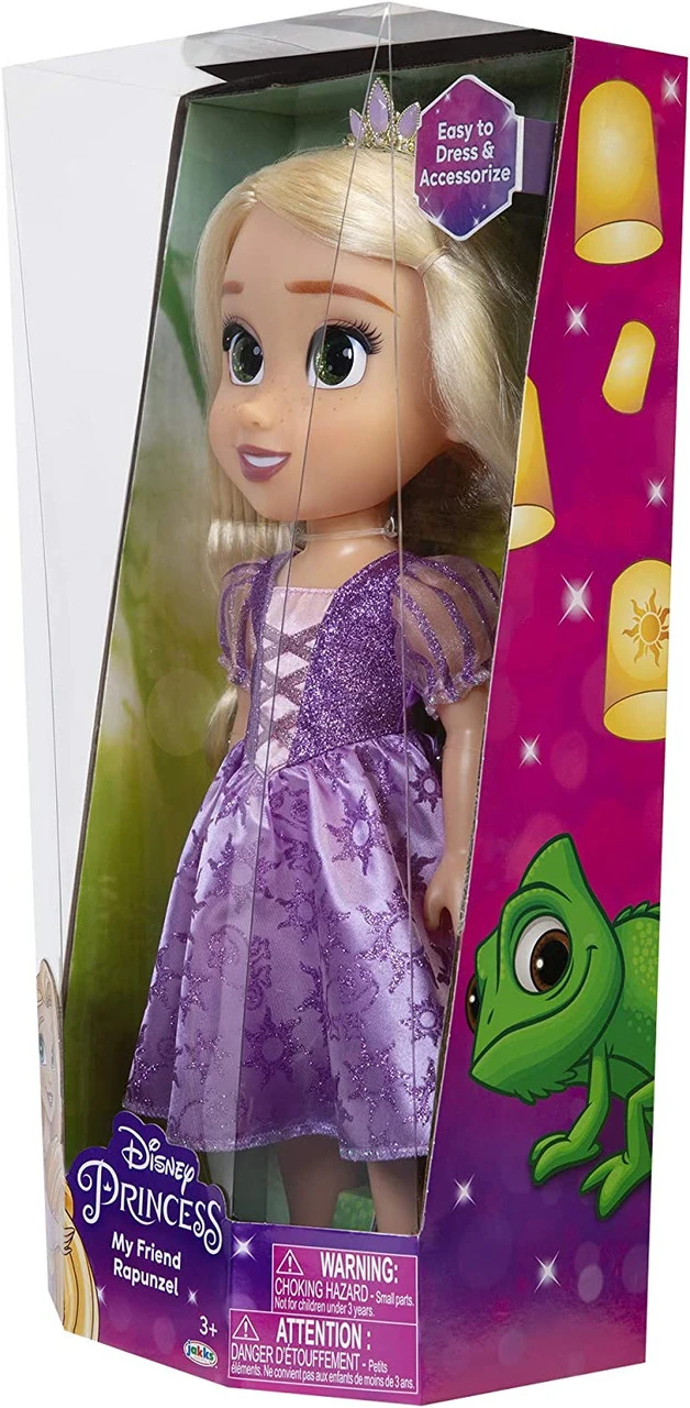 Disney Princess My Friend Rapunzel Doll 14″ Tall Includes Removable Outfit and Tiara *Rapunzel has shimmery glitter eyes and her signature long flowing hair to style. *This gorgeous Princess is approximately 14 inches tall Includes: Doll Removable dress Shoes Tiara Also look for the matching Rapunzel girl dress! (sold separately)