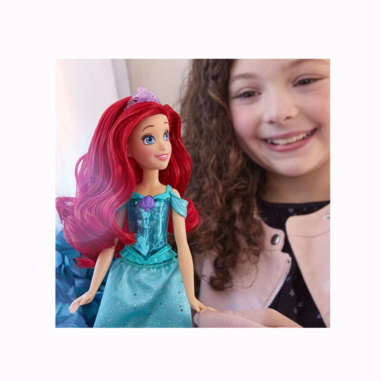 With this Royal Shimmer Disney Princess doll, kids can imagine Ariel bravely following her dreams for a life beyond what she s always known. Inspired by her animated character, this Disney doll includes a fashion doll skirt and accessories – a tiara and shoes in her signature colour. Kids can have fun recreating scenes from the Disney movie with the fashion doll s long red hair. The Ariel doll makes a great birthday present or holiday gift for girls and boys 3 years old and up and is an awesome addition to kids Disney doll collection