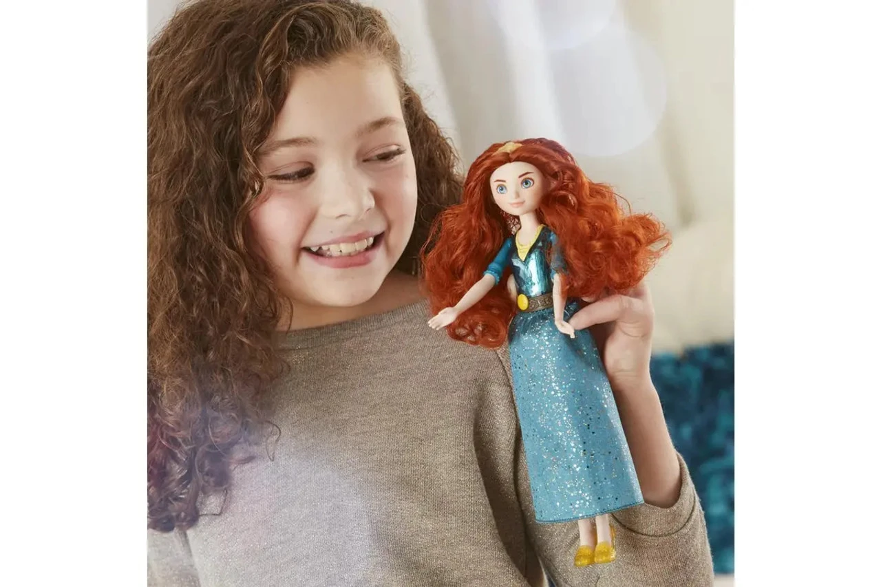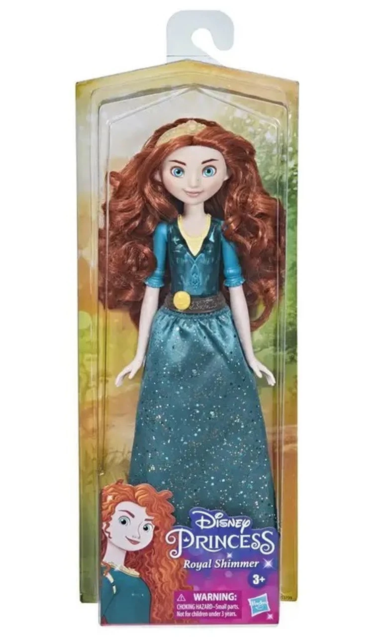 Dreaming of a life beyond the role her parents expect of her, Merida accidently unleashes forces that she has to undo with courage and determination. With this Royal Shimmer Disney Princess doll, kids can imagine the athletic and fearless Merida joining them right in their living rooms! Inspired by her animated character, this Disney doll includes a fashion doll skirt and accessories – a tiara and shoes in her signature colour blue. Kids can have fun recreating scenes from Disney and Pixar’s Brave with the fashion doll’s long red hair and stylish outfit. The Merida doll makes a great birthday present or holiday gift for girls and boys 3 years old and up and is an awesome addition to kids Disney doll collection! Includes doll, skirt, tiara and shoes. The Royal Shimmer Merida doll includes skirt, shoes, and tiara in shades of her signature colour blue The Disney Princess fashion doll has long red hair, inspired by her unforgettable style in Disney and Pixars Brave The Disney dolls bodice gleams with gem-inspired facets that shimmer beautifully alongside her glittering skirt