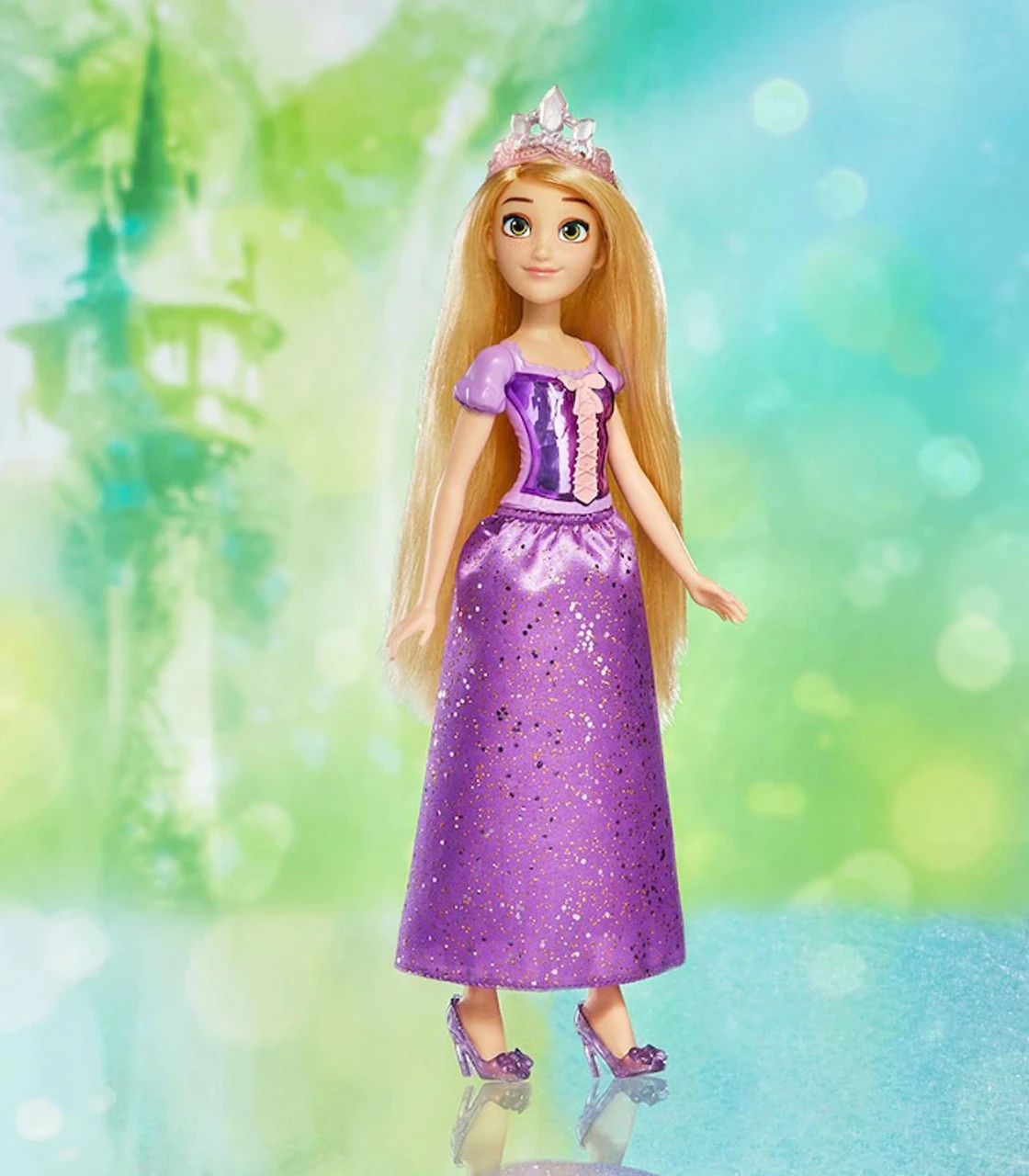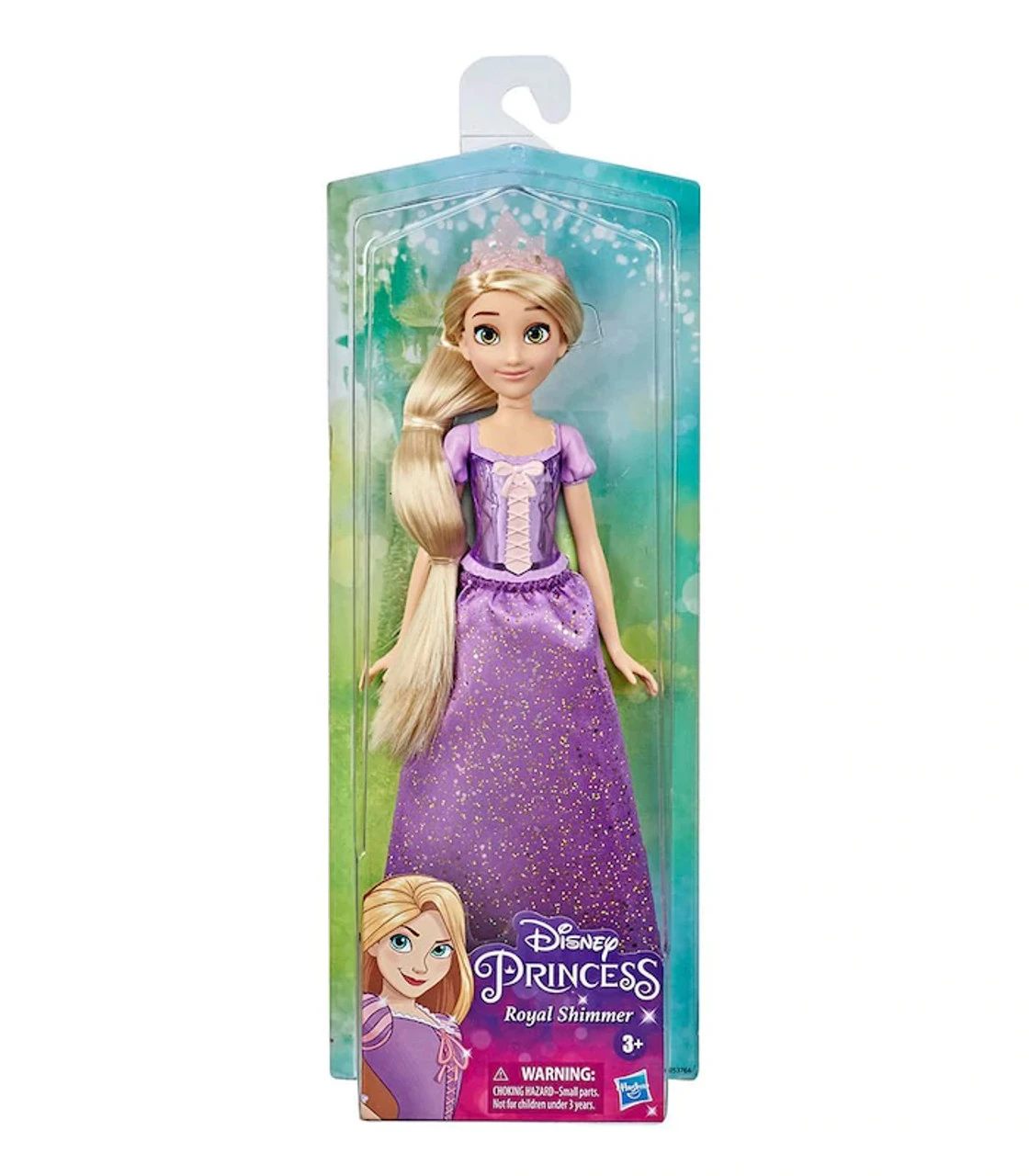 - Includes: Fashion Doll – with Skirt & Toy Accessories The Royal Shimmer Rapunzel doll includes a skirt, shoes, and tiara in shades of her signature colour purple
