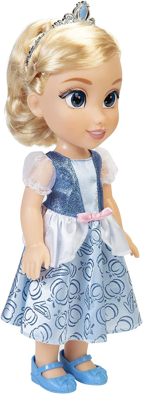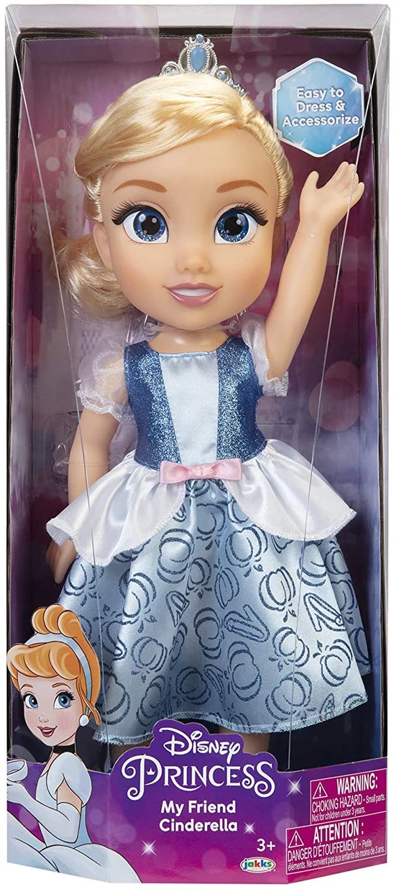 Disney Princess Toddler Cinderella In a spectacular royal gown and tiara from her Fairy Godmother, Princess Cinderella wishes for a friend to go to the ball with her. Help her make it home by midnight! Includes: Doll, tiara, gown, shoes. For ages 3 and up.