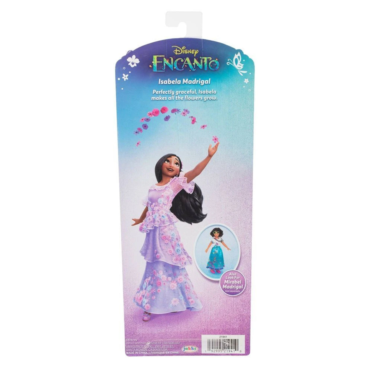 Walt Disney Animation Studio’s 60th feature, Encanto, tells the tale of an extraordinary family, the Madrigals, who live hidden in the mountains of Colombia, in a magical house, in a vibrant town, in a wondrous, charmed place called an ‘Encanto’. The magic of the Encanto has blessed every child in the family with a unique gift from super strength to the power to heal—every child except one, Mirabel. But when she discovers that the magic surrounding the Encanto is in danger, Mirabel decides that she, the only ordinary Madrigal, might just be her exceptional family’s last hope. Isabela Madrigal from Disney’s Encanto comes wearing her signature outfit and accessories! Just like in the film, Isabela’s stunning lavender dress features beautiful ruffle details on her collar and sleeves. Her delicate layered skirt is decorated with gorgeous pink, purple, and blue flowers, just like her dress in Encanto! Isabela’s stunning flower hair clip, dainty gold earrings, and purple espadrille shoes complete her classic look. With this Isabela Madrigal doll, you can pretend you have flower powers too!