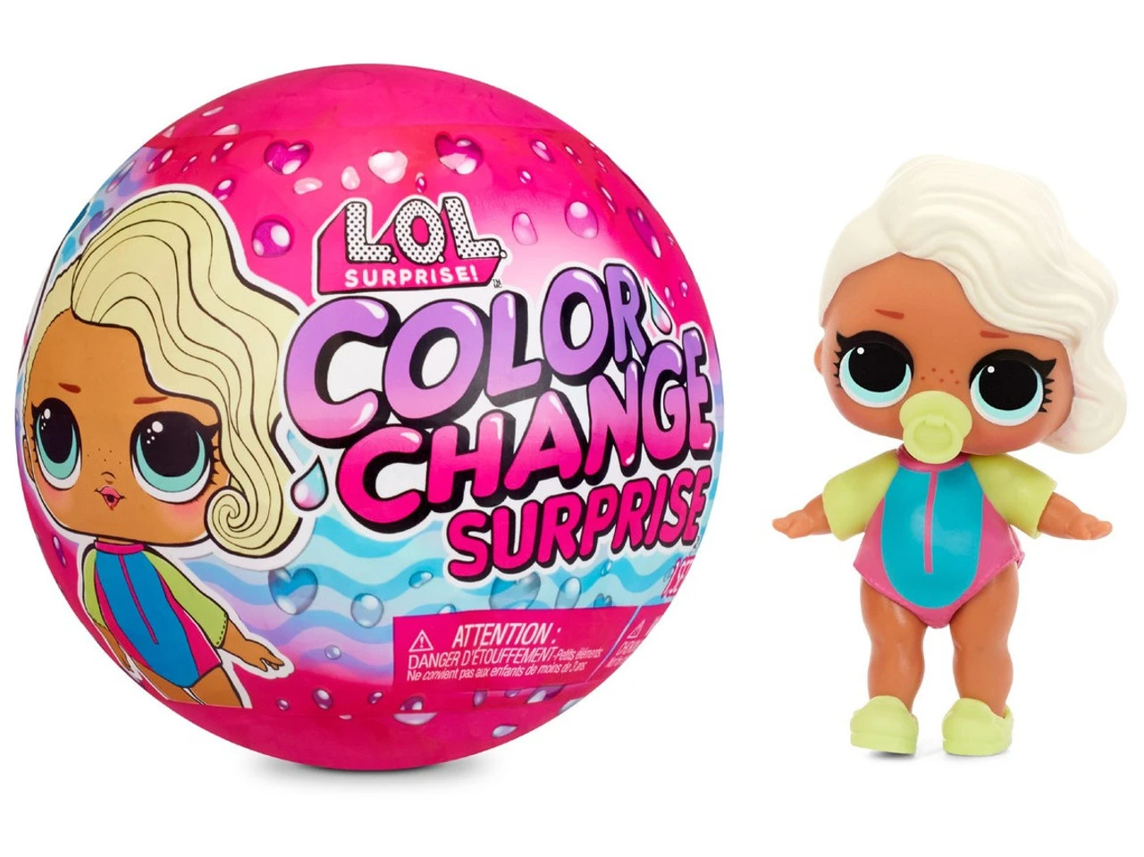 - COLOR CHANGE: For the first time ever, BOTH the doll and the ball really change colour when placed in water!