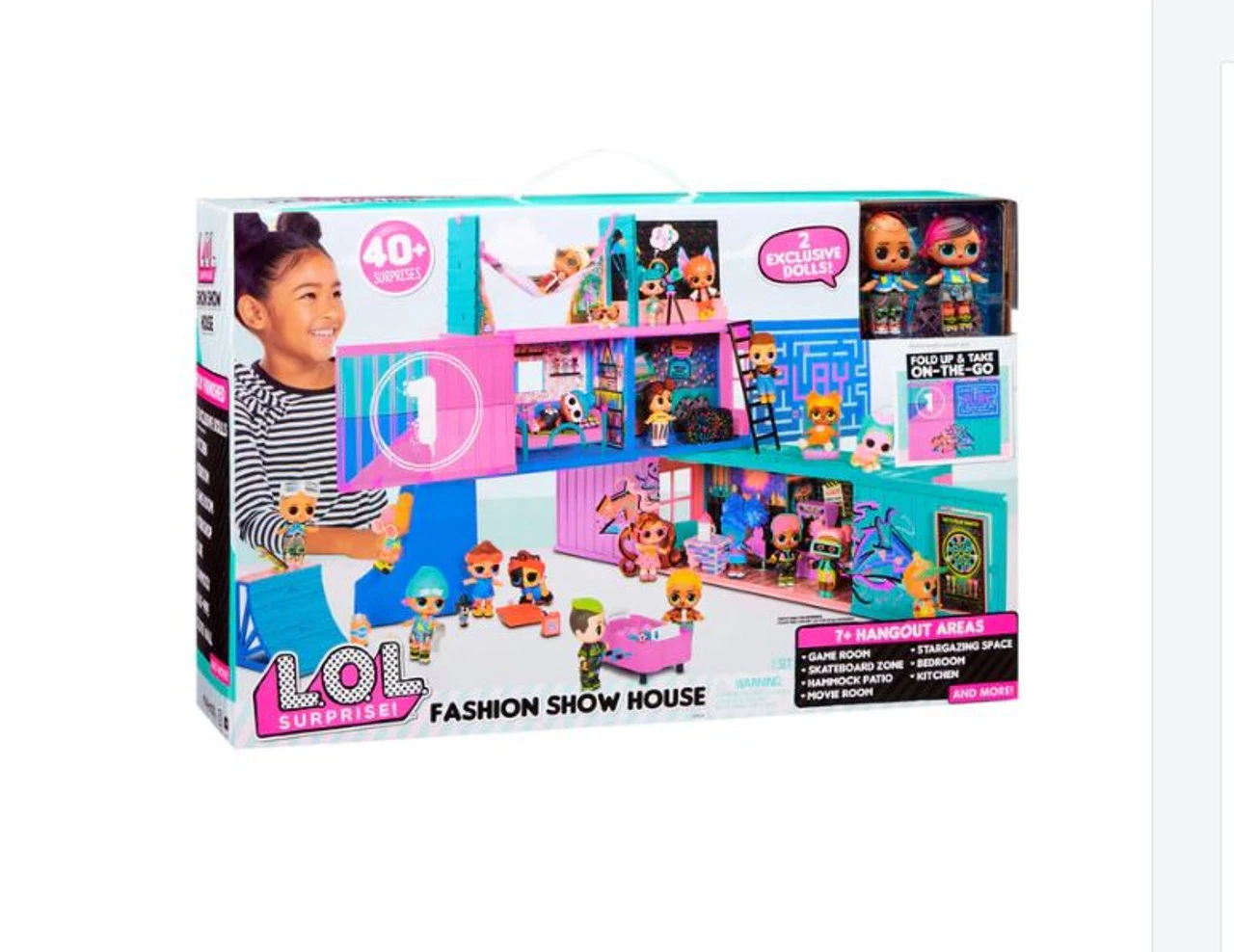 Introducing the new L.O.L. Surprise! Fashion Show House Playset, the ultimate stylish hangout for L.O.L. Surprise! Dolls & Boys. Along with 40+ surprises, the playset showcases two shipping containers that fold out, pop up, and transform into a fully furnished 3-story house! The Fashion Show House features 7 hangout areas including a game room, skateboard zone, patio, movie room, bedroom, and kitchen. Unbox unique furniture and accessories for the entire house, like a foosball table, bean bag chair, hammock, and more. The playset includes 2 exclusive dolls, one L.O.L. Surprise! Doll and one Boy doll (boys dolls are anatomically correct). When finished putting on your very own glamorous fashion show, the house easily folds up and holds all your accessories so you can take it on the go!