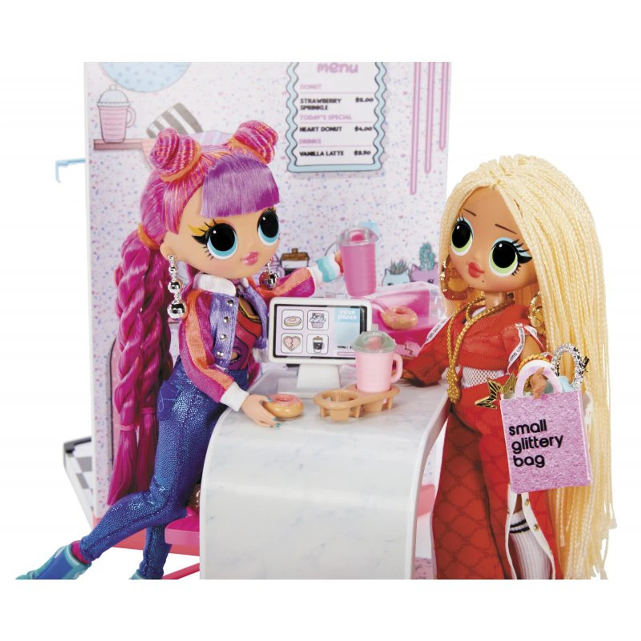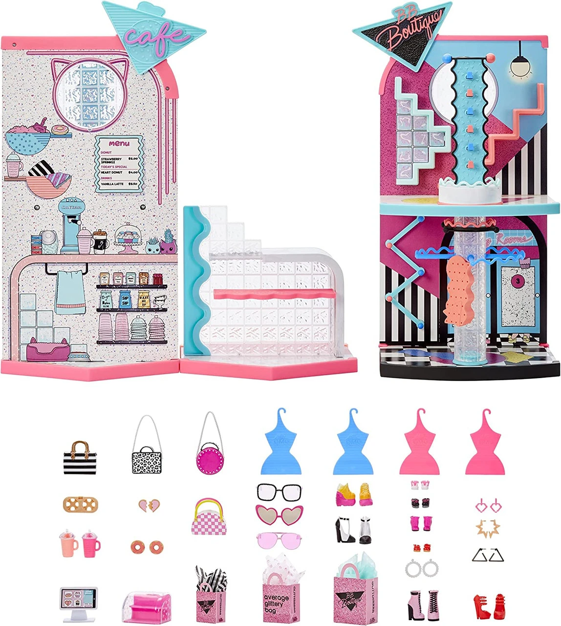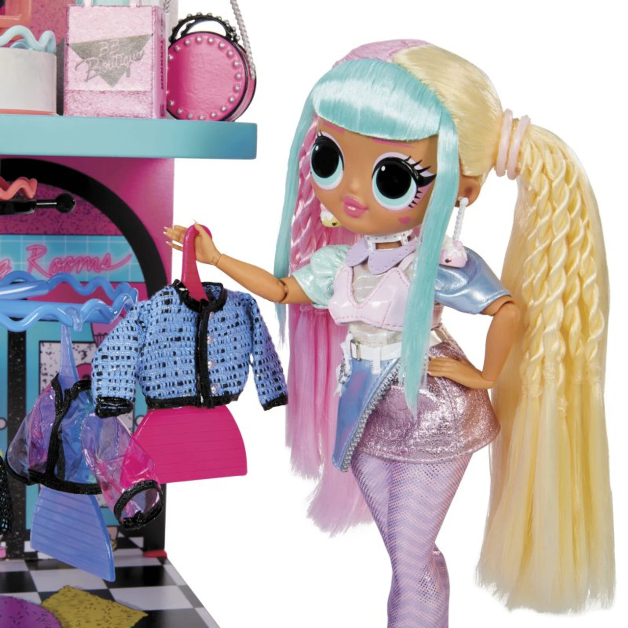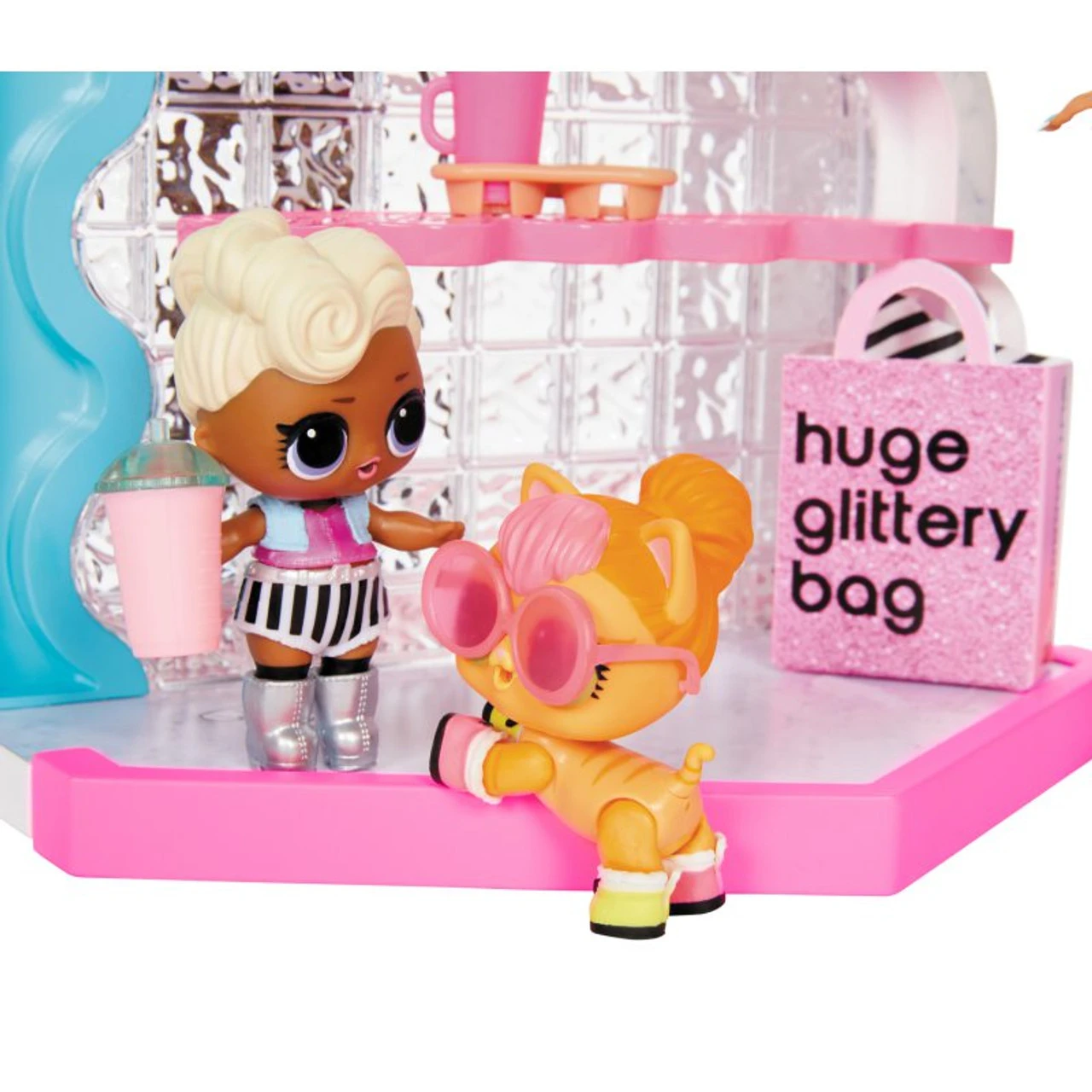 For the ultimate spot that your L.O.L. Surprise Dolls can shop-till-they-drop, take them to the L.O.L. Surprise! O.M.G. Mall of Surprises! Unbox 50+ surprises with this all-new playset, which offers 360 degrees of interactive glam play. The two-story B.B. Boutique features clothing rack displays that really spin to show off all the included fierce fashion and accessories, while the Café hangout comes with a two-sided counter ready for ordering and serving up a variety of the delish donuts and drinks. At the L.O.L. Surprise! O.M.G. Mall of Surprises, you can shop and play with all L.O.L. Surprise Tweens, O.M.G., and collectible dolls. Pair this playset with the L.O.L. Surprise Shine On Salon & Spa and the O.M.G. House of Surprises Dollhouse to create an entire world-of-play for all your fashion and collectible dolls!