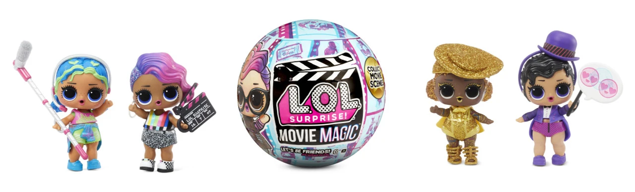 INCLUDES: 1 LOL Surprise Movie Magic doll, secret message, cue card, surprise movie scene, bottle, 3D glasses, accessories, fashion outfit, shoes, eye lens and movie script.