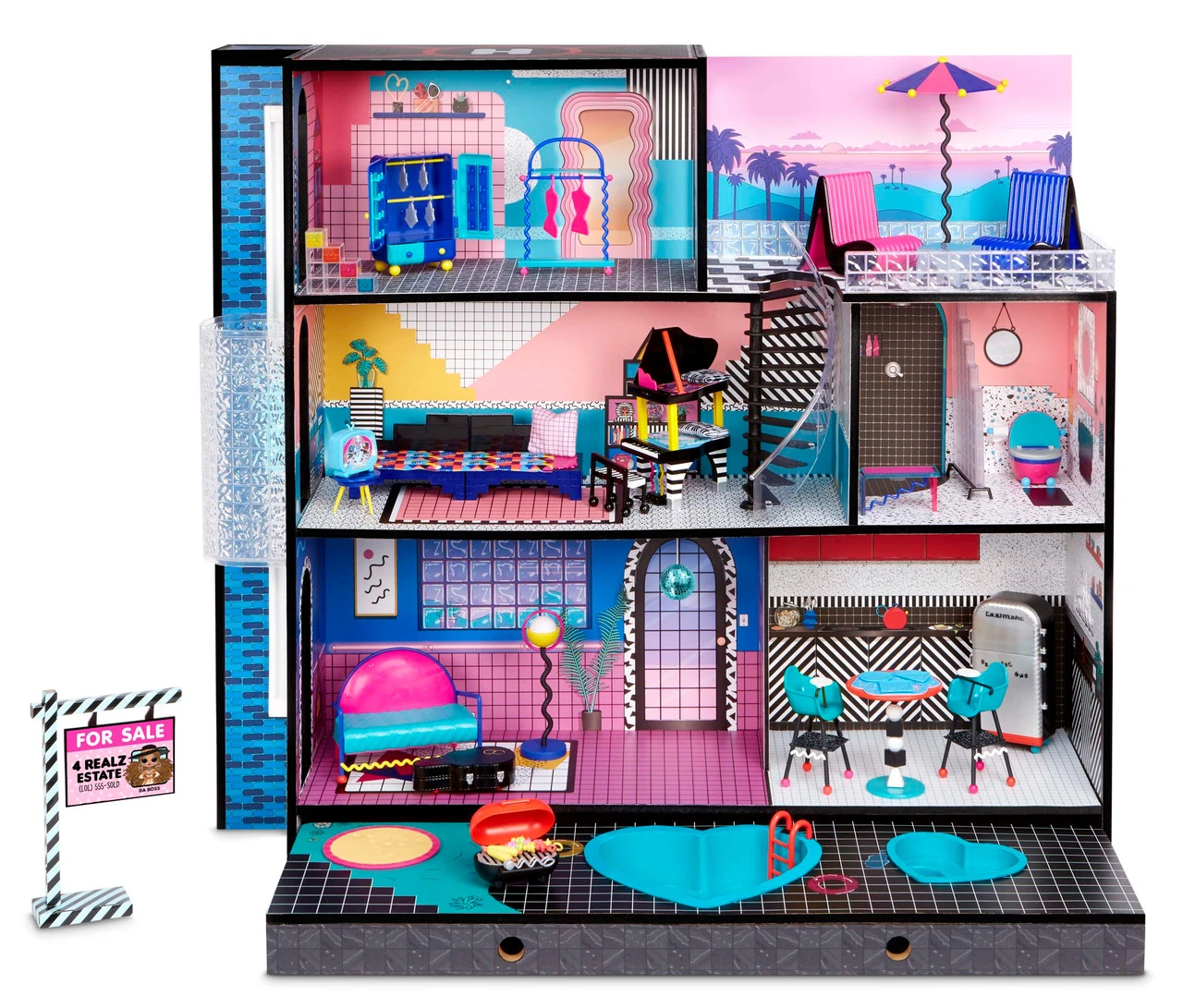• 360º play – the back of the house features a mall backdrop for even more outrageous fun.