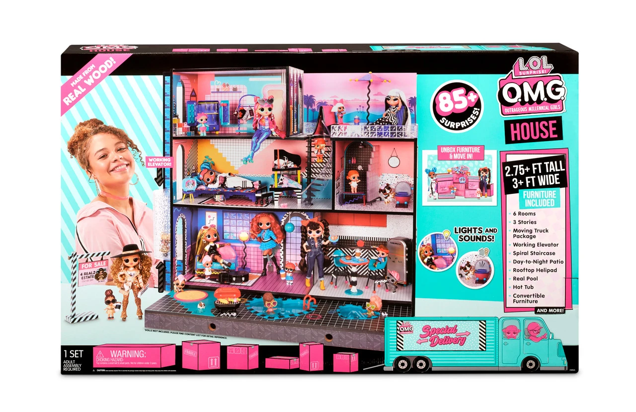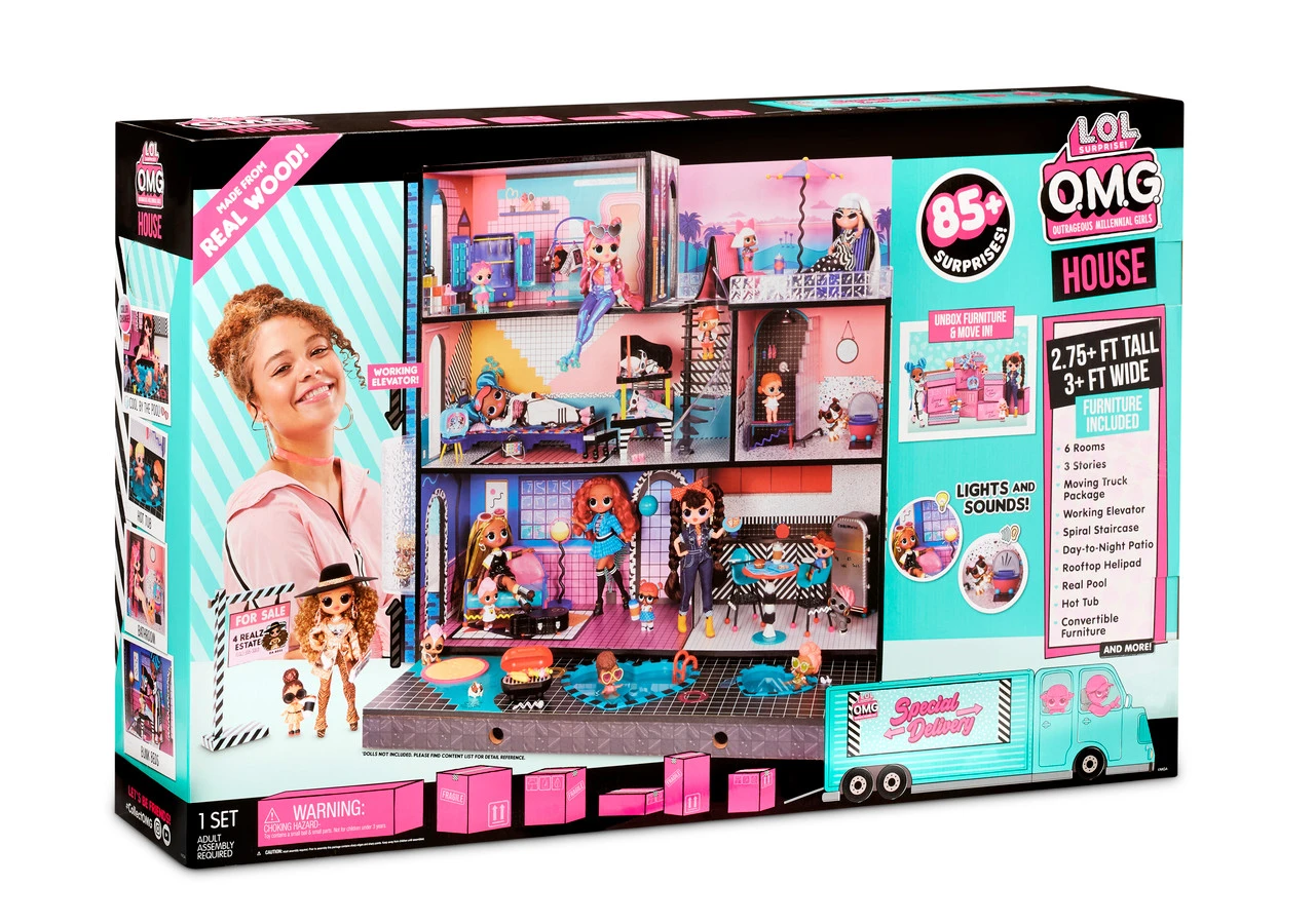 L.O.L Surprise! O.M.G. House includes 85+ surprises and fits L.O.L. Surprise!™ dolls and fashion dolls.