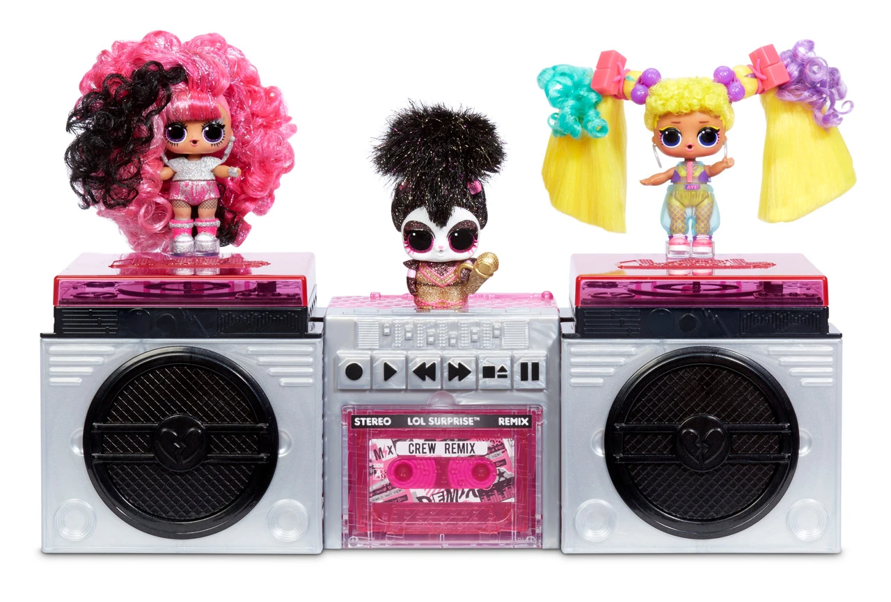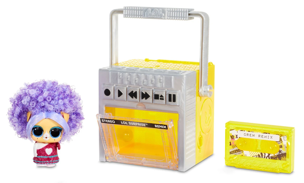 Collect all 12 L.O.L. Surprise! Remix Pets. Collect to build a boombox by connecting 2 L.O.L. Surprise! Hair Flip and 1 L.O.L. Surprise Remix Pets packages. Collect music and lyrics from the entire L.O.L. Surprise! Remix line to complete the whole song. Or, mix & match lyrics to create your own remix.