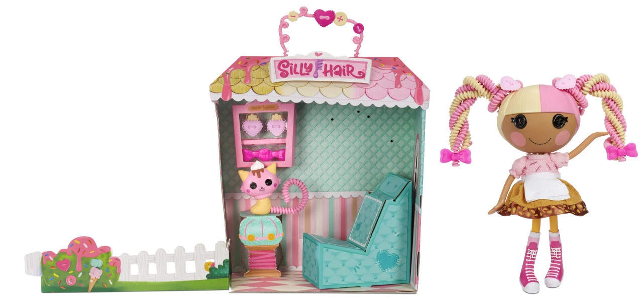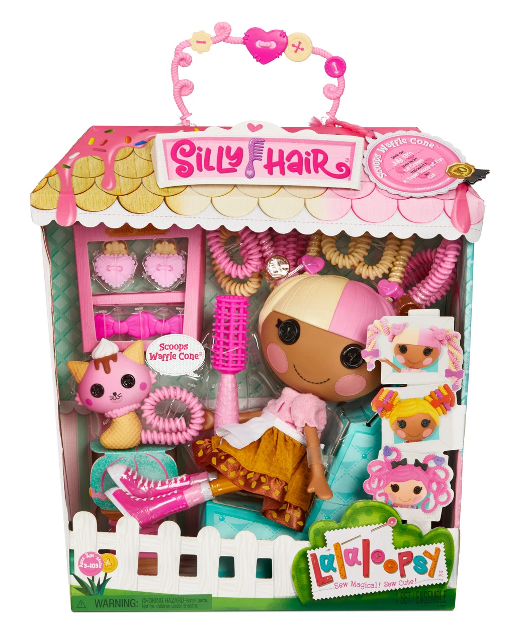 Lalaloopsy Silly Hair dolls have fun hair that bends every which way! Easy for little ones to style the Lalaloopsy doll’s hair and her pet’s tail too! Includes fun hair styling brush, 4 clips and 6 hair beads. Child can wear & share the hair clips too. First-ever multicolour Silly Hair doll and Scoops Waffle Cone’s first time in Silly Hair form! Lalaloopsy’s 10th Anniversary Lalaloopsy were once rag dolls that magically came to life when their last stitch was sewn. Each doll comes with a poster of all 25 Lalaloopsy 10th Anniversary dolls available to collect. Cute, Colourful, Whimsical and Fun, Celebrating Creativity, Uniqueness & Diversity Cute & colourful, Lalaloopsy offers a whimsical world of friendship & fun, inspiring kids to develop their own creativity and imagination. Lalaloopsy dolls have unique personalities drawn from the fabric used to sew them. They celebrate diversity – everyone is special in their own way! Scoops Waffle Cone’s Personality Scoops Waffle Cone was made from a bowl of Neapolitan ice cream. She’s a triple scoop of fun who always keeps her cool. She loves variety, but has trouble making up her mind. She has a pet cat. April Sunsplash’s Personality April Sunsplash was sewn from a rainbow umbrella. She’s always bright and happy, and when the sun comes out on a rainy day, her true colours really shine through! She has a pet toucan. Reusable Salon Playset Each NEW package is a reusable salon playset with salon chair piece that uniquely express the personality of each doll. Child helps build the pet’s salon chair with extra pieces! Connect Scoops’ salon with other salons and houses to create Lalaloopsy Land! Innovative Storytelling Child gets to ‘sew the last stitch’ to release doll from package to magically bring the doll to life in their pretend play. Get to know the characters in the Netflix Original Series We’re Lalaloopsy, and other Lalaloopsy TV series and movies available for streaming on Amazon Prime, iTunes, Kidoodle and YouTube. Lalaloopsy dolls are one-of-a-kind, and your love and creativity help make their world sew special. Sew Magical! Sew Cute!