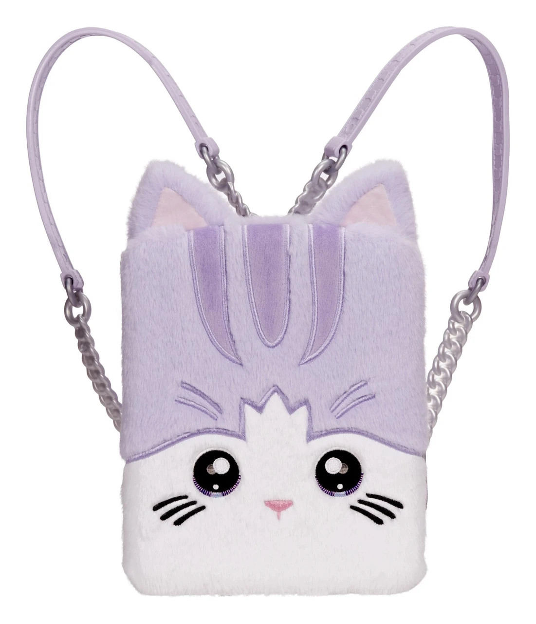 - FUNCTIONAL FUZZY BACKPACK: Backpacks have never been this adorable. This fuzzy backpack looks like a tabby cat and has moulded straps for on-the-go play.