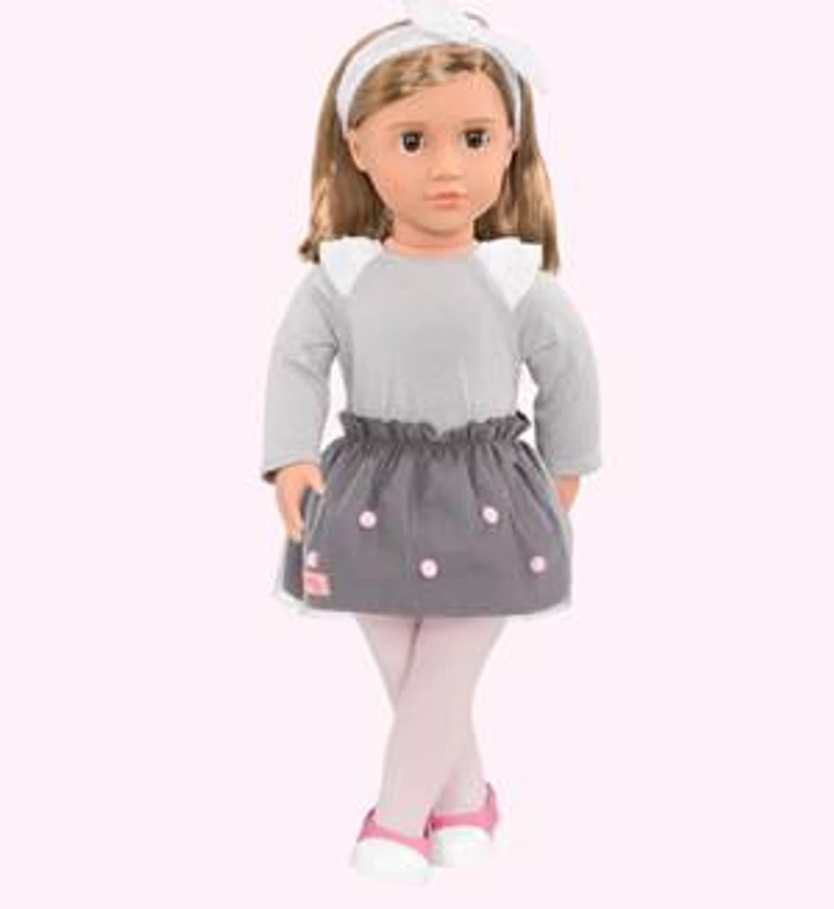 Add a little sweetness to your playtime with Bina, an Our Generation 18-inch fashion doll! She has warm brown eyes that open and close, and her long, wavy brown hair is lots of fun to brush and style! She loves being creative with her outfits, wearing a cosy top with beige pom-poms, a fuchsia skirt, and a trendy, caramel-coloured hair ribbon that completes her playful look. Bina’s outfit also has easy-open closures that make it fun to mix and match with other colourful Our Generation selections, so Bina can have bright new styles every day!