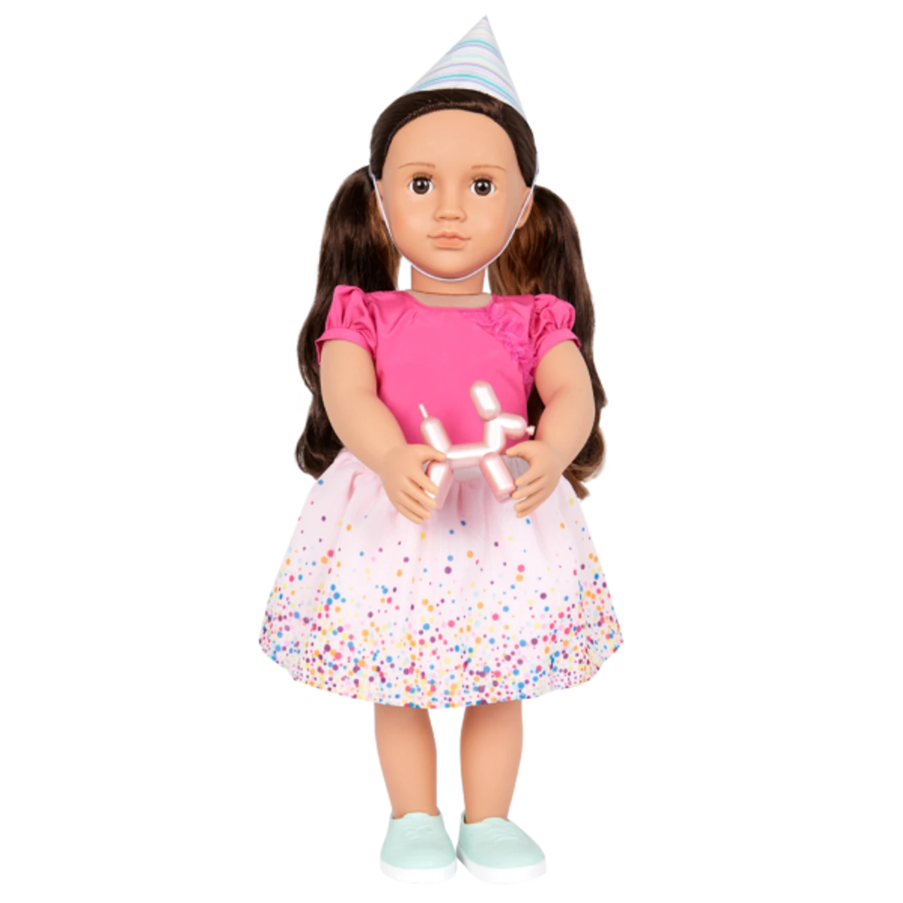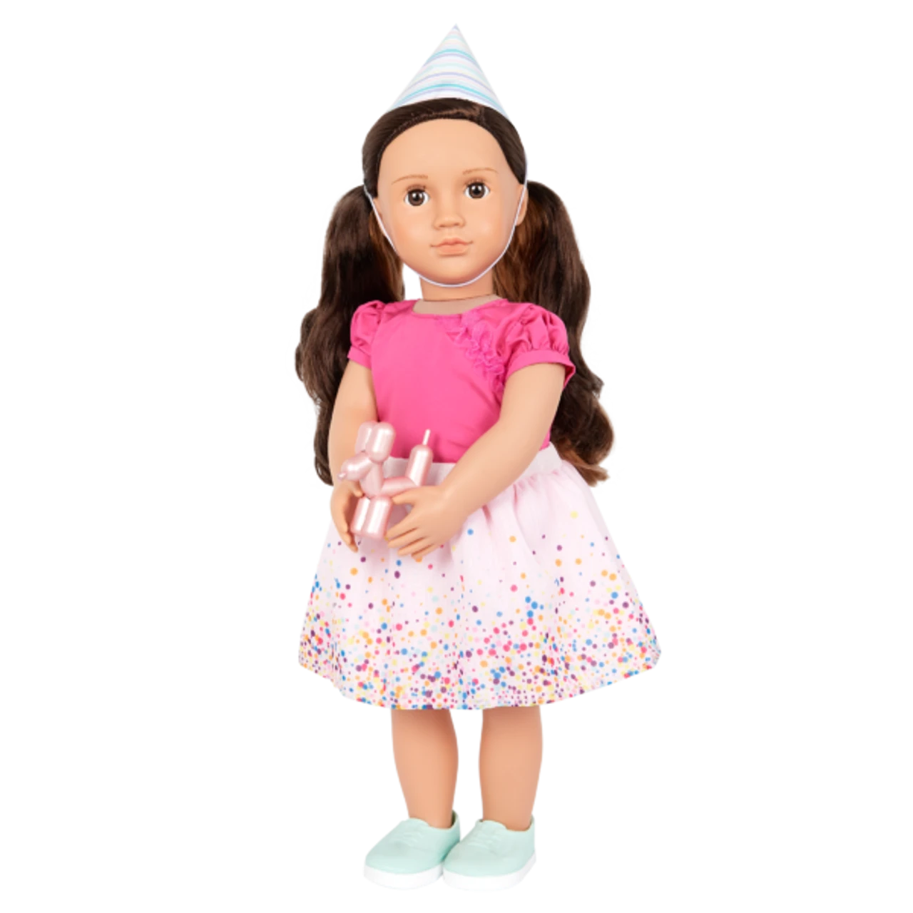 - 18-inch Doll Birthday Outfit: from birthday girl to party guest, have your doll bestie ready for a surprise celebration with the Our Generation It’s Time to Party outfit!Includes: top with ruffle cap sleeves, confetti-inspired skirt, Poodle balloon animal, party hat, and a pair of shoes.Mix & Match: outfit features easy-open closures to quickly put on and remove; compatible with most 18-inch dolls, outfits, and accessories.Recommended Age: suggested for kids ages 3+ (small parts).Outfit Set Only: dolls sold separately.