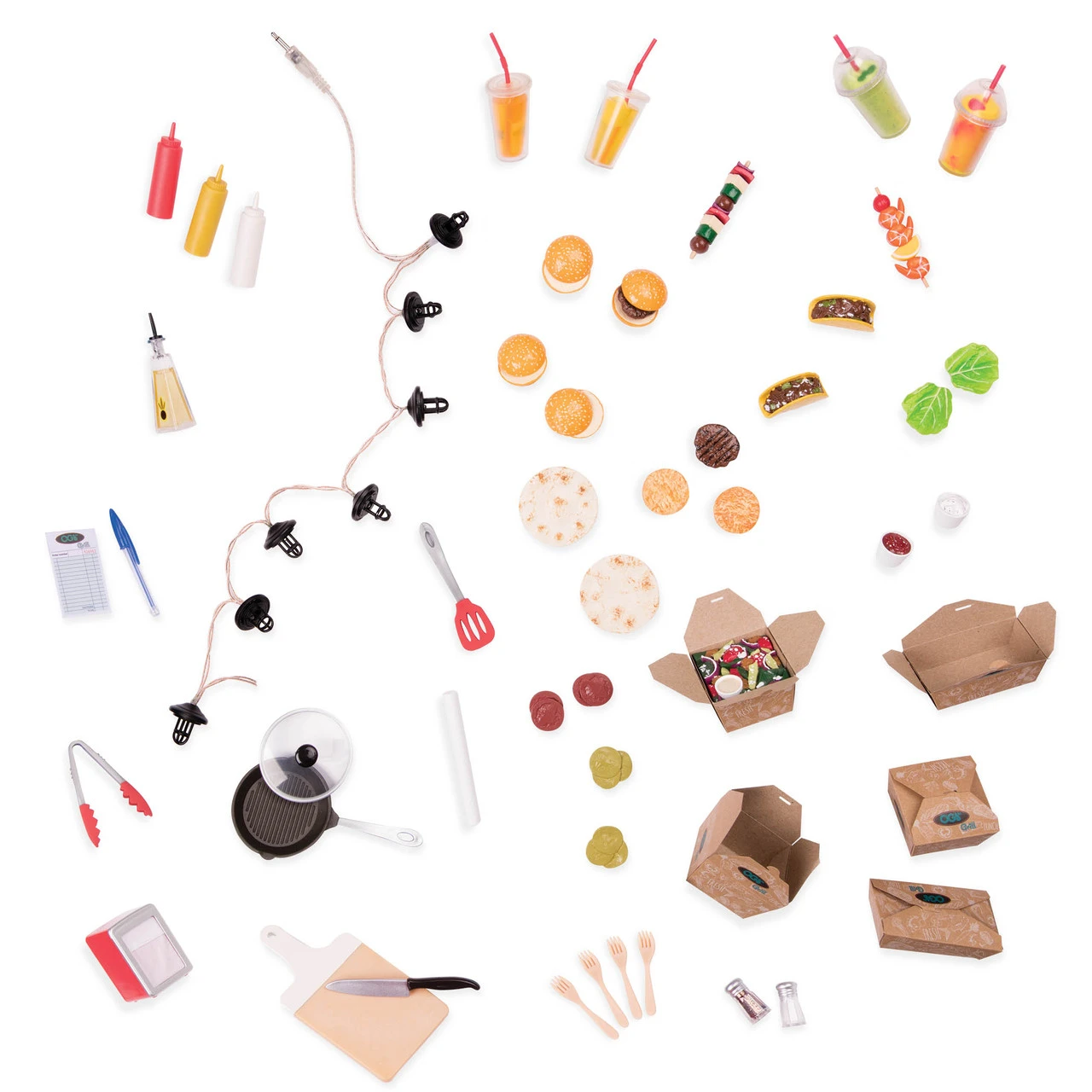 • 54-piece Food Truck accessory set for 18-inch dolls