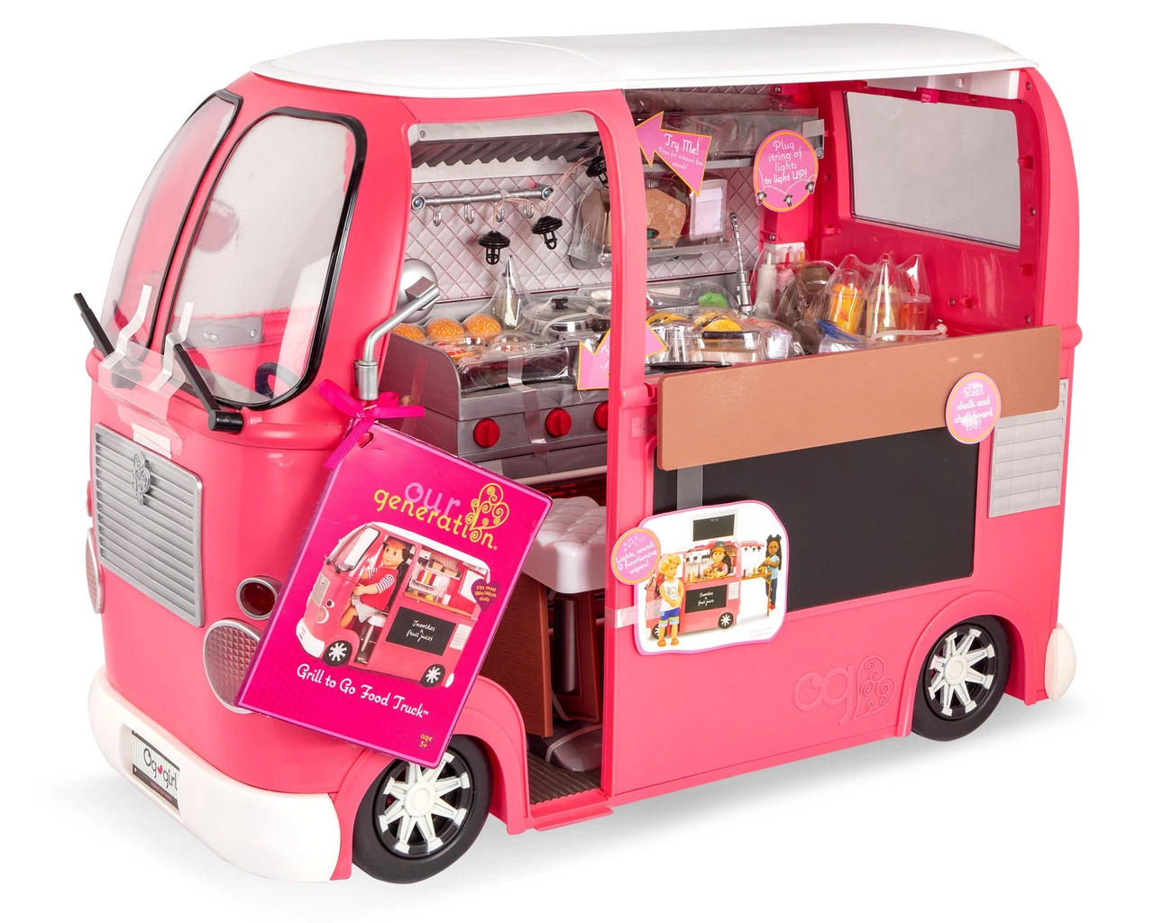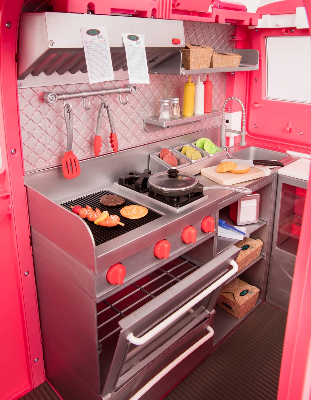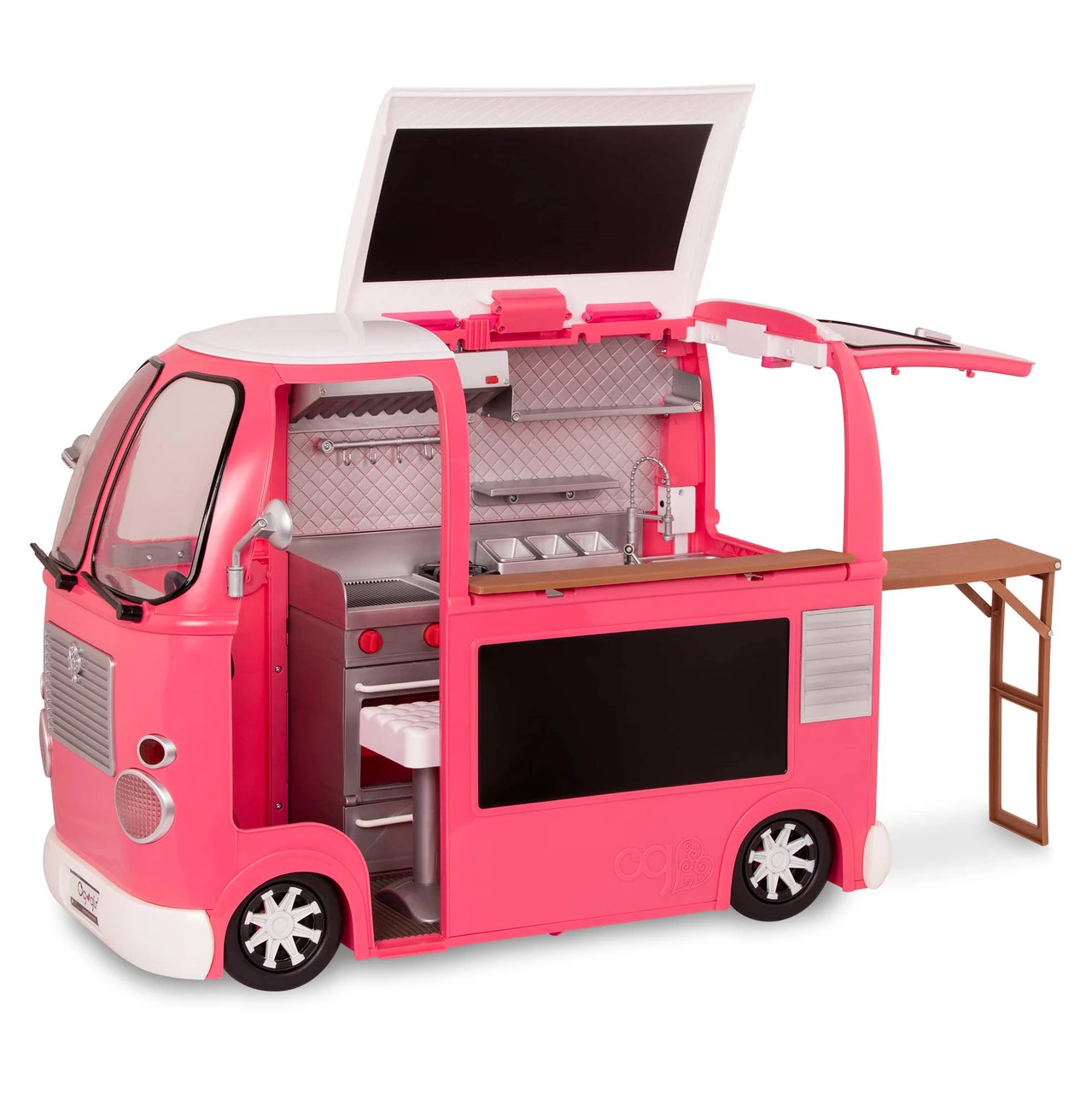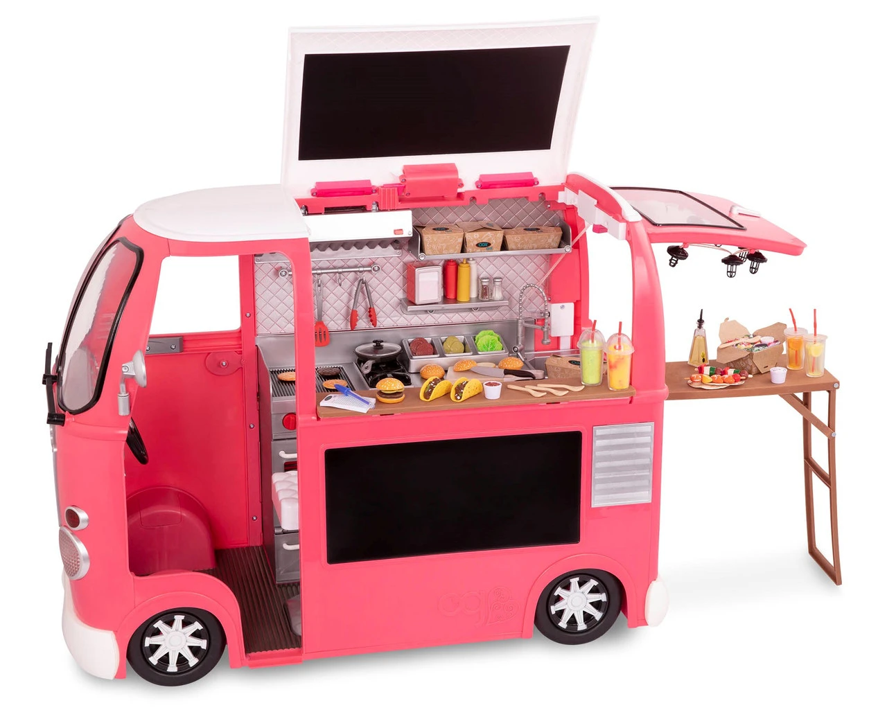 Fun is on the menu with the Our Generation Deluxe Food Truck accessory set for 18-inch dolls! Serve up delicious snacks on the go – with a side of smiles!