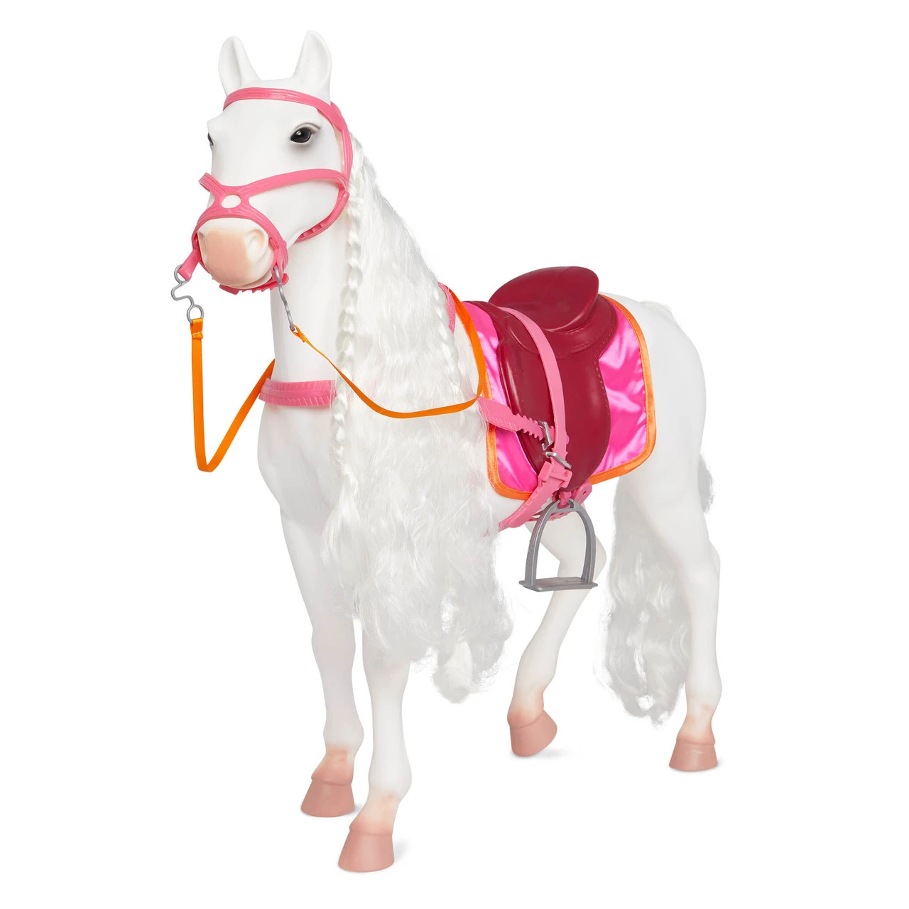 This 20-inch toy horse is one stylish steed! From hair to there! Harness equestrian fun and practice your beauty salon skills with the Camarillo Hair play Horse from Our Generation! Because we are an amazing generation of kids. We’re grabbing the reins and organizing beach clean-ups, helping out at clothing drives, and growing our ponytails out for charities. And while we may be busy making the world a lot better, we’re also having a lot of fun, laughing with our friends and stomping through muddy pastures – til our boots almost get stuck. This is our time. This is our story.