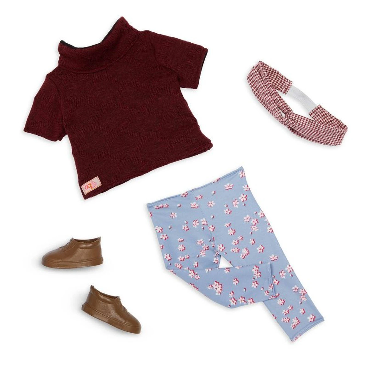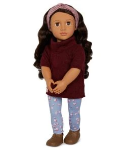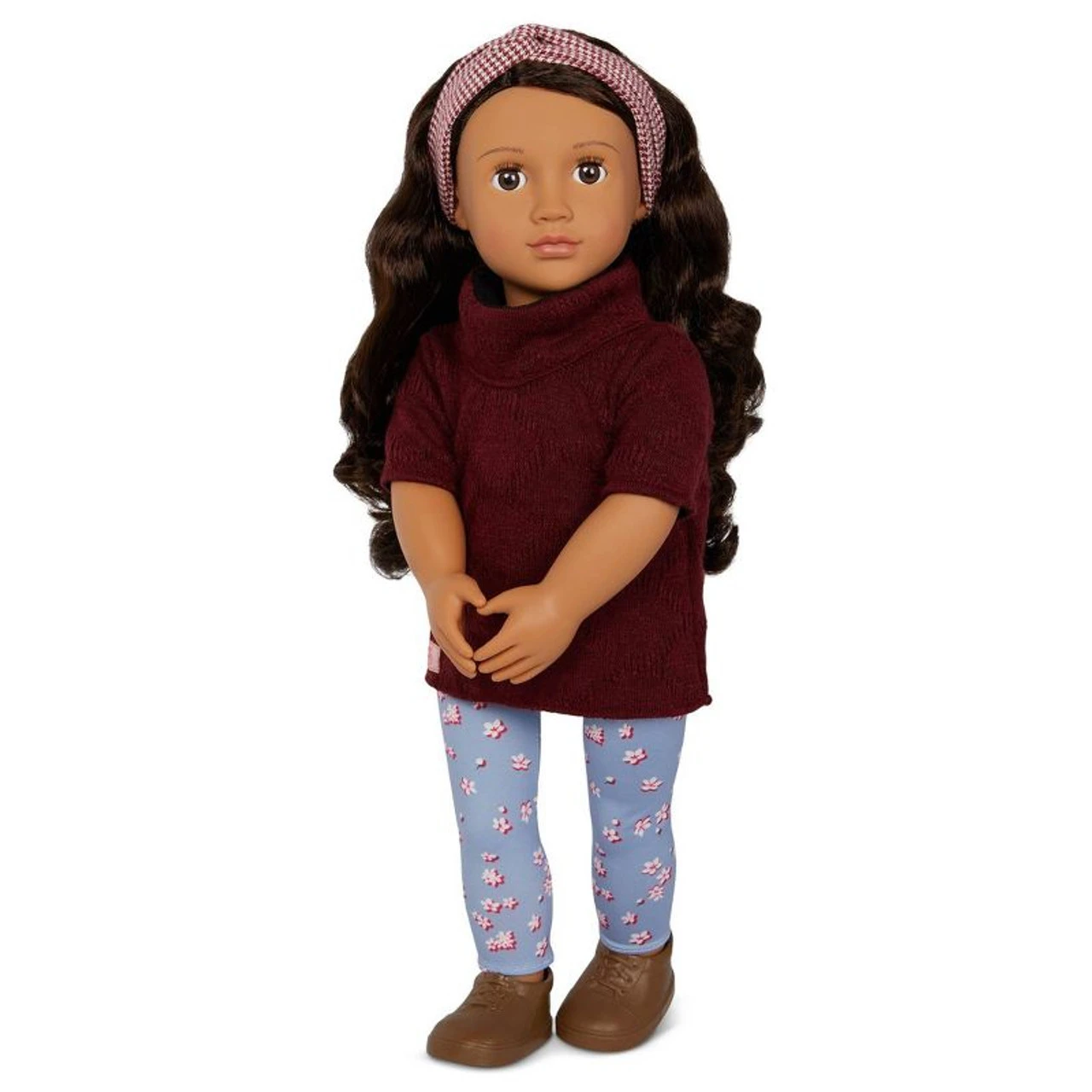 Explore, dream, and discover adventure with Marcia! This Our Generation 18-inch doll has beautiful brown eyes that open and close with long, wavy brown hair that’s fun to style. Full of positive energy and determination, she arrives wearing a burgundy, high-collar knit sweater, floral-print leggings, and a cute headband to accessorize her hairstyles from braids to ponytails, Marcia loves to stay stylish from head to toe! She has a huggable soft body and can rotate her neck, arms, and legs to easily change outfits, so you can create more fun looks together to match every activity! Product Features Hair Type: Wavy