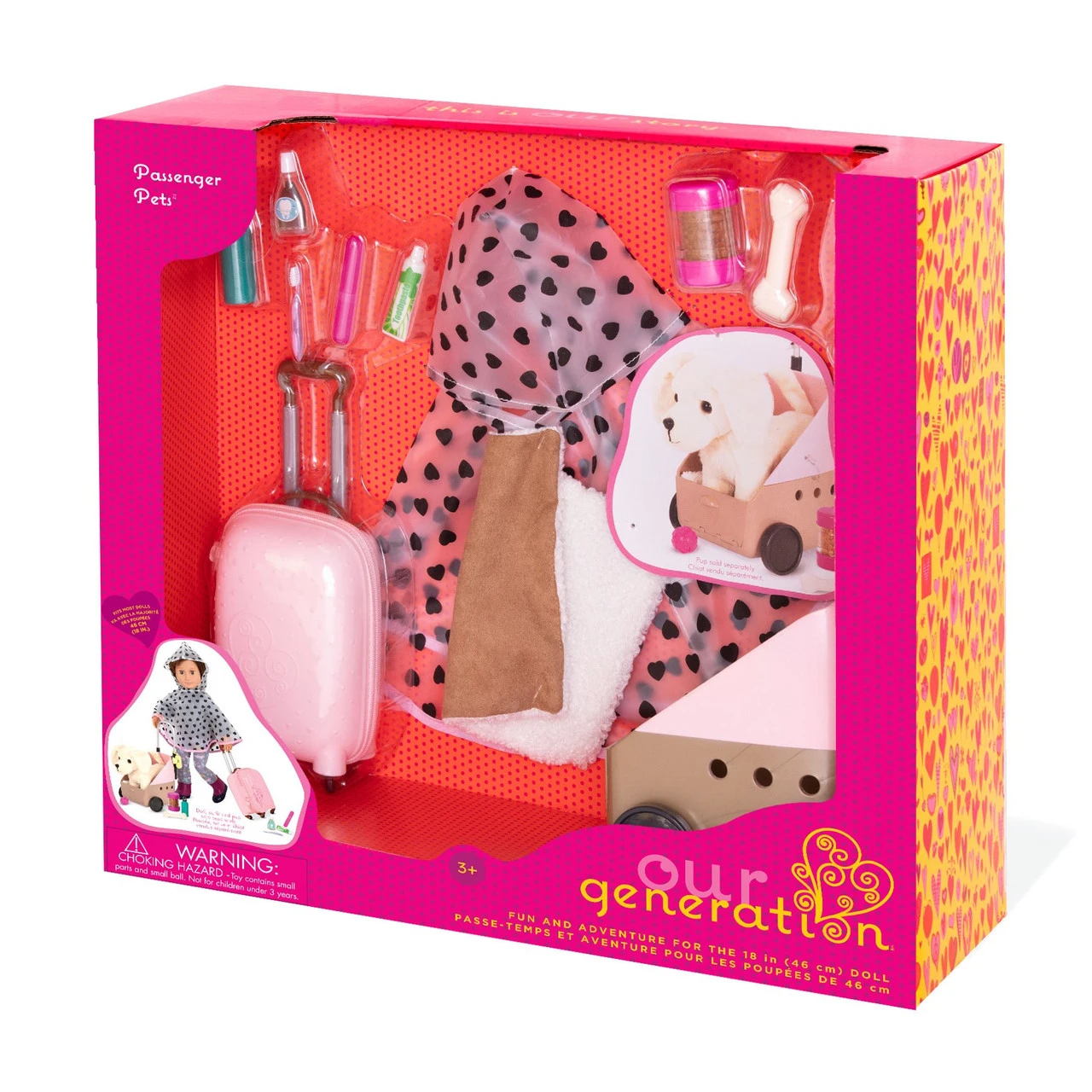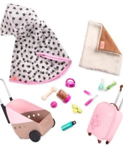 • Includes: dog carrier, luggage, dog rug, poncho, and travel accessories