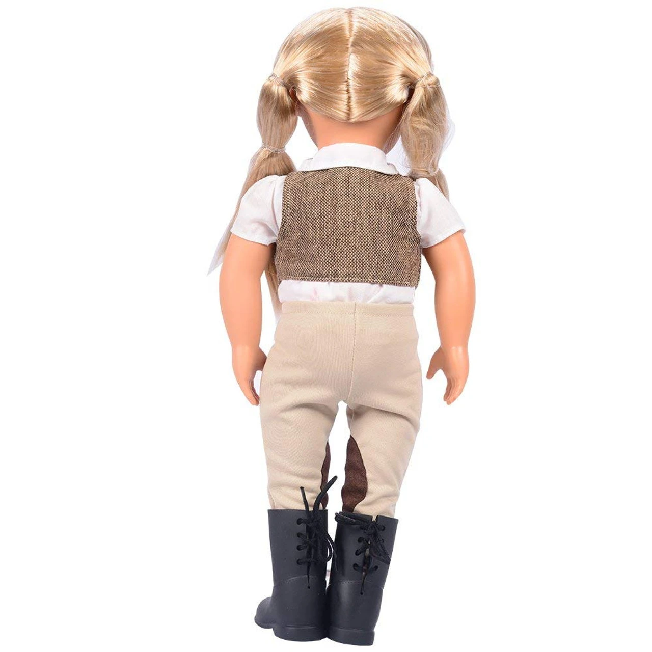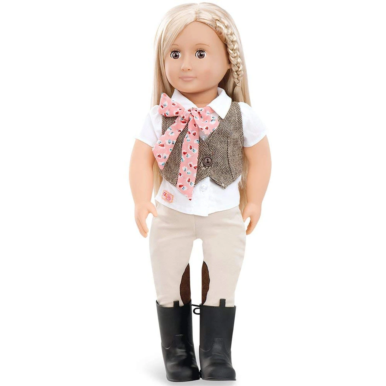Blaze your own trail with Our Generation Regular 18-inch Riding Doll – Leah! This lovely 18-inch doll with pretty brown eyes and long, straight blonde hair.