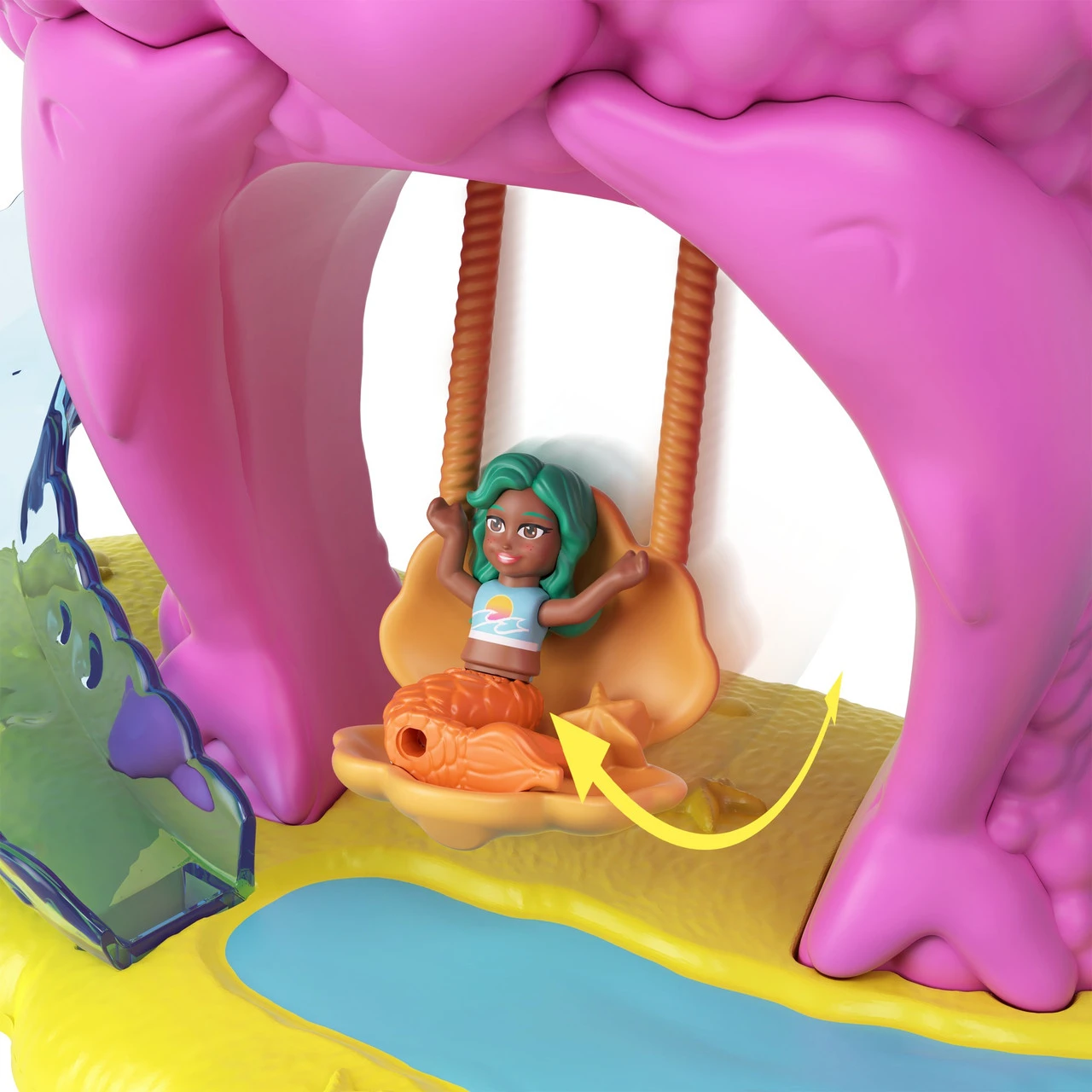 Get ready for Theme Park Adventures with Polly Pocket! The Rainbow Funland Rides playset features a choice of two exciting Polly Pocket rides: Mermaid Cove or Fairy Flight. Both the Mermaid Cove Ride and the Fairy Flight ride are themed playsets that each feature a turret that spins and dispenses 15 surprises (kids can reload and play again and again). The Mermaid Cove ride has a seahorse carousel, a turret with multiple rooms (a game room, ice cream booth and seashell room) to play in, a swing and slide. The Fairy Flight ride has a butterfly carousel, a turret with multiple rooms (tea room, game room and throne room) to play in, a swing and slide. Playsets also include one Polly doll and friend doll (each has moveable joints for pose and play action).