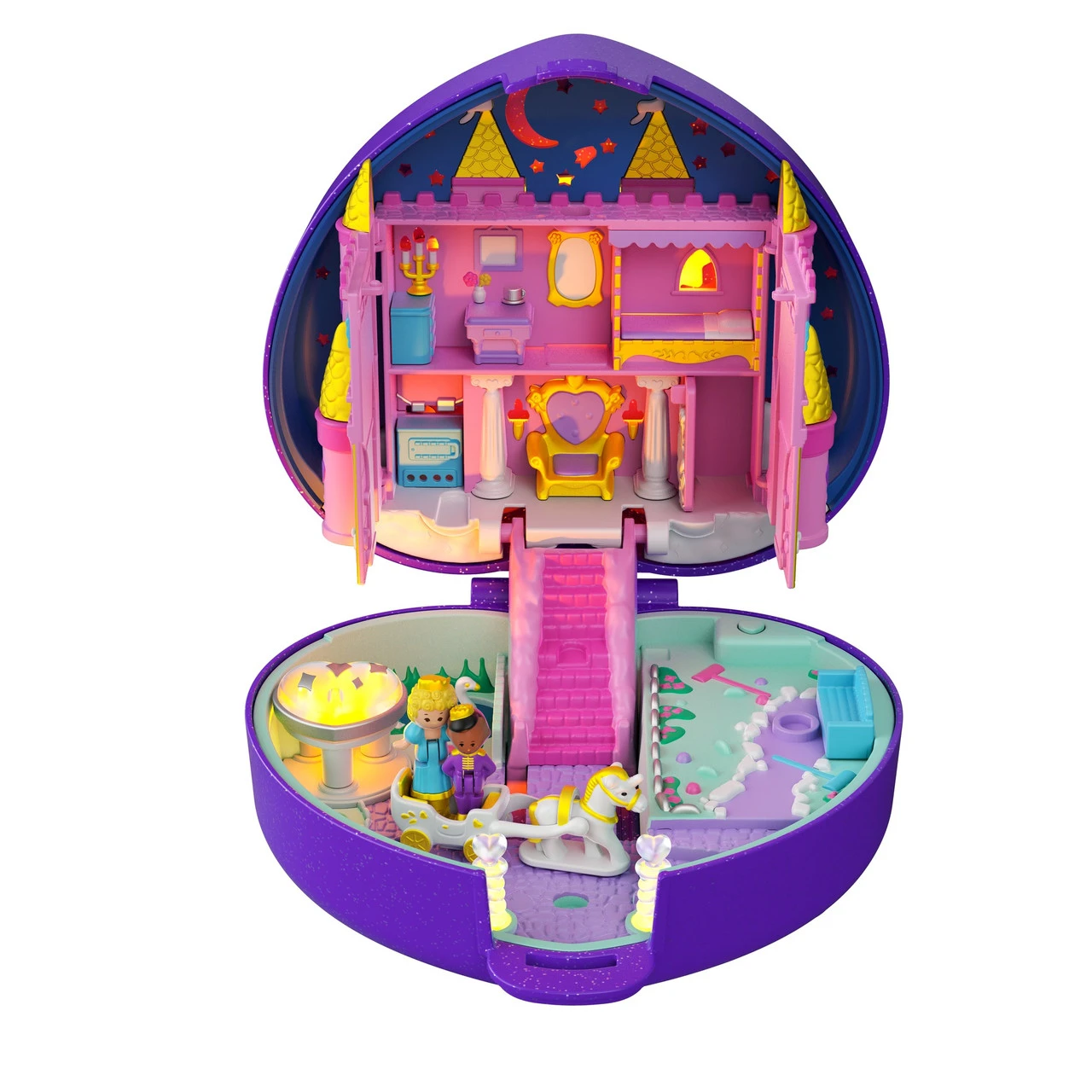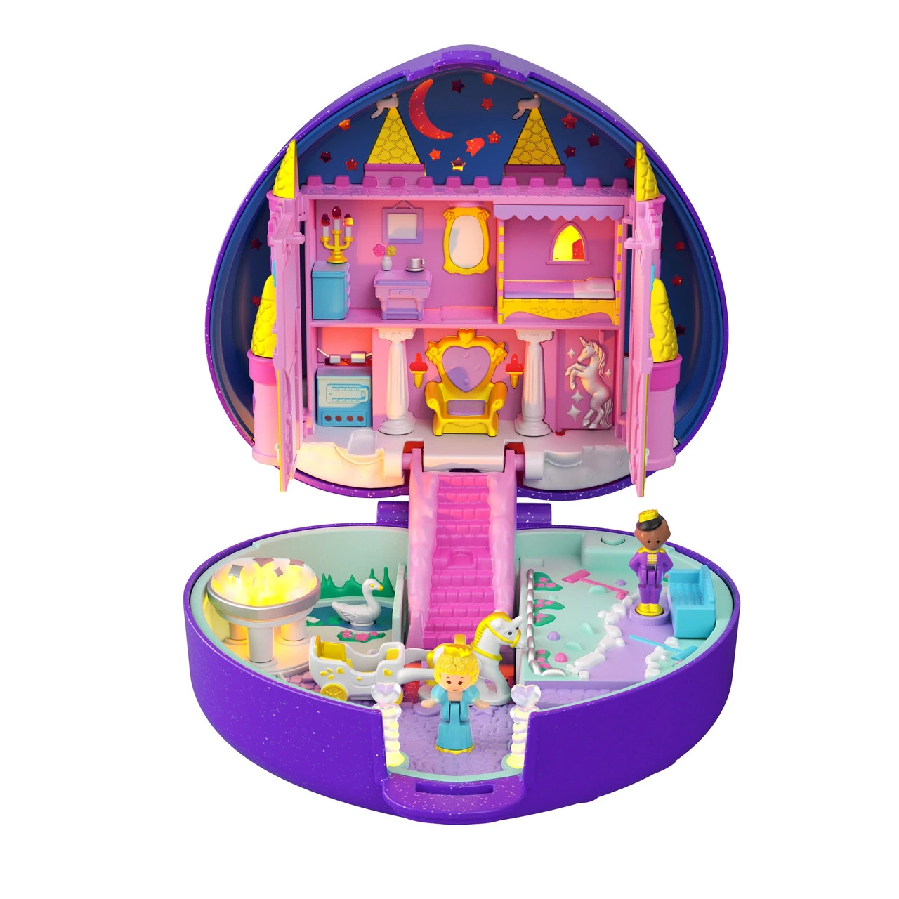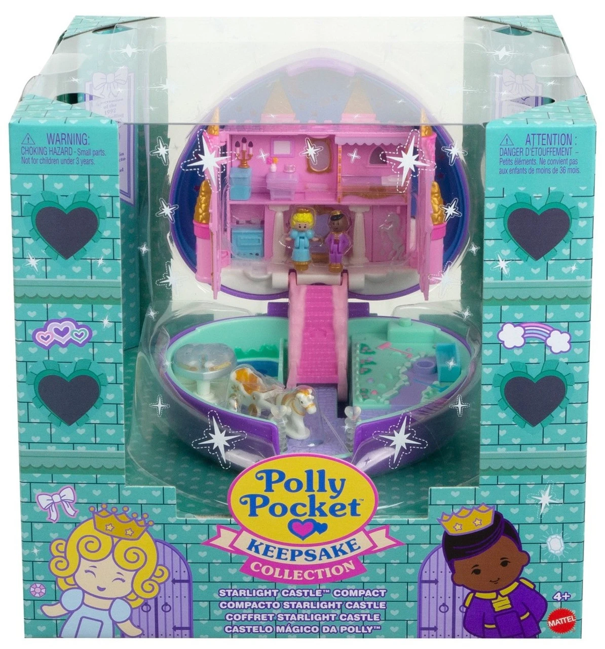 For more than 30 years, Polly Pocket has been enchanting fans everywhere with tiny worlds and big surprises. The Polly Pocket Keepsake Collection brings back the magic of classic fan favourites from the heritage Polly Pocket vault some are never-before-seen compacts, and others are updated recreations. This special edition collector compact is a new recreation of the popular 1992 Starlight Castle compact. Featuring carefully crafted original details with gorgeous modern enhancements, the collectible Polly Pocket Keepsake Collection Starlight Castle compact comes in special collector packaging with the unique Keepsake Collection logo, perfect for display! This out-of-the vault compact brings back the enchanted evening details fans remember from the original, including an updated enchanted castle and garden with beautiful new colours and a secret hidden door. Castle really opens! Compact also includes sparkling magical lights that really turn on and comes with Polly doll, a prince doll, a horse and carriage and swan and unicorn figures. Collectors can revisit the magic of their favourite childhood Polly Pocket compact with this sophisticated keepsake. Dolls cannot stand alone. Colours and decorations may vary. Makes a great collectible gift for Polly fans everywhere! Bring back the magic of classic fan favourites from the heritage Polly Pocket vault with the Polly Pocket Keepsake Collection. Some are never-before-seen compacts, and others are updated recreations! A new recreation of the popular 1992 Starlight Castle compact, this special edition collector compact features original details with modern enhancements and comes in special collector packaging with the Keepsake Collection logo. This out-of-the vault compact brings back the enchanted evening details fans remember from the original, including an updated enchanted castle and garden with beautiful new colours and a secret hidden door. Castle really opens! Includes magical light feature and Polly doll, a prince doll, a horse and carriage and swan and unicorn figures. Revisit the magic of a favourite childhood Polly Pocket compact with this sophisticated keepsake! – Product Dimensions: Height: 12.2cm x Depth: 12.4cm x Width: 5.8cm – WARNING: CHOKING HAZARD. Small parts. Not suitable for children under 3 years.